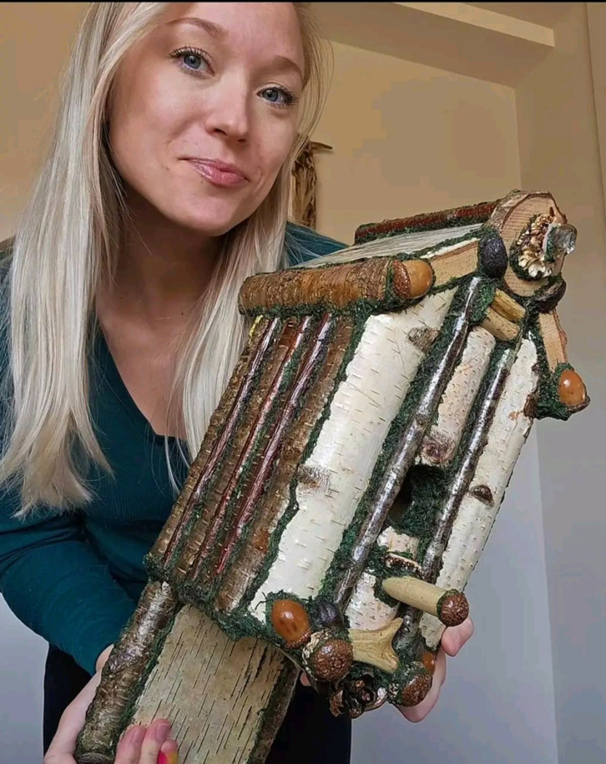 Tricia ensures the longevity and functionality of her work by being meticulous in every last detail. “When people see the beauty and complexity of my birdhouses, they’re often amazed to learn that they can safely be hung outdoors. But more often than not, they choose to display them inside instead.”
