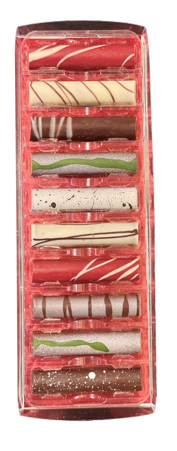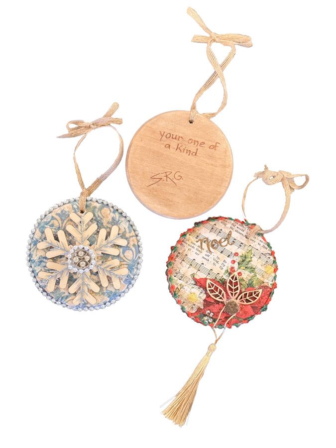 Any chocolate lovers out there on your gift giving list? Boy did I hit it big when I arrived at Finishing Touches and found their decadent chocolate section, all hand poured, offering these scrumptious Moonshine Chocolate Truffle Bars. I’m actually going to give these to Bert the Police Officer as he once had romance in him but got rid of it. Ya gotta feel for the Mrs…Maybe some chocolates around the house would sweeten him up! Let me give you a little hint as to what I chose from top to bottom: Chocolate Covered Strawberry, White Chocolate Peanut Butter, Tiramisu, Chocolate Mint, Cookies n’ Cream, Chocolate Cheesecake, Chocolate Covered Strawberry, Mocha Madness, Chocolate Mint and Chocolate Coconut! I think that makes for a delectable gift…nice color palette too! Let me not forget my mother-in-law, Mrs. Hatch! How she loves to decorate at the holidays, it’s where Mary gets it from! For her holiday table, I found an assortment of Decorative Soy Candles in different shapes, sizes and colors. She’ll love mixing and matching them to make her table shimmer by candlelight! And for her tree, I couldn’t help but pick up a few of the Handmade Christmas Ornaments by Sandy Garbrandt. Each piece is distinctly designed with a winter or holiday theme with a quote on the back. Little details make them so exceptional like faux pearls and diamonds, holiday sheet music and carefully carved snowflakes of wood. I know they only have a limited supply so I better pick them up while they last!