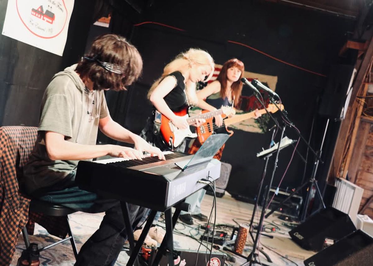 Callista plays the guitar, Demetra plays bass, John plays the piano and kick drum, and they all do vocals.