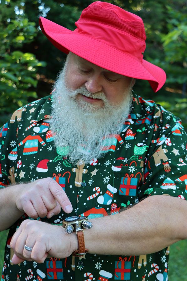 Nick tells me about this being his second year of Santa Camp. It’s a school for Santa, Mrs. Claus, and the elves. The New England Santa Society hosted the event at Barbara C. Harris Camp & Conference Center in Greenfield, New Hampshire. “Last year, I took their introductory course – ‘Preparing the Sleigh,’ and learned so much, even though I’ve been playing Santa for several years now,” Nick explains how the camp promotes camaraderie and the sharing of knowledge throughout the weekend. “We also have reindeer games, trivia, and even a Santa Swap Meet, where we can trade gear and accessories.” I imagine this makes people arrive as strangers and leave as friends, which Nick happily confirms. “So, it’s not all learning,” he grins at me. I guess not.