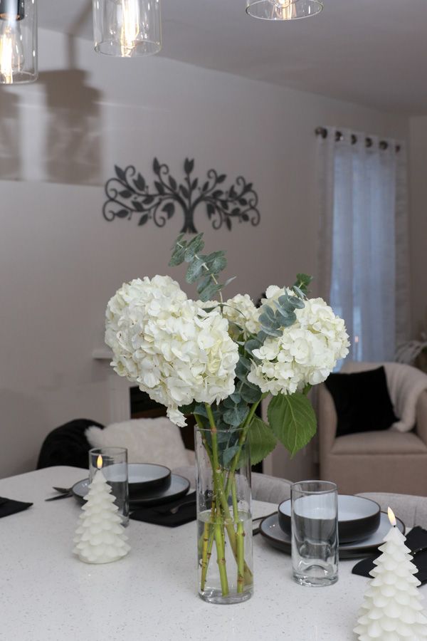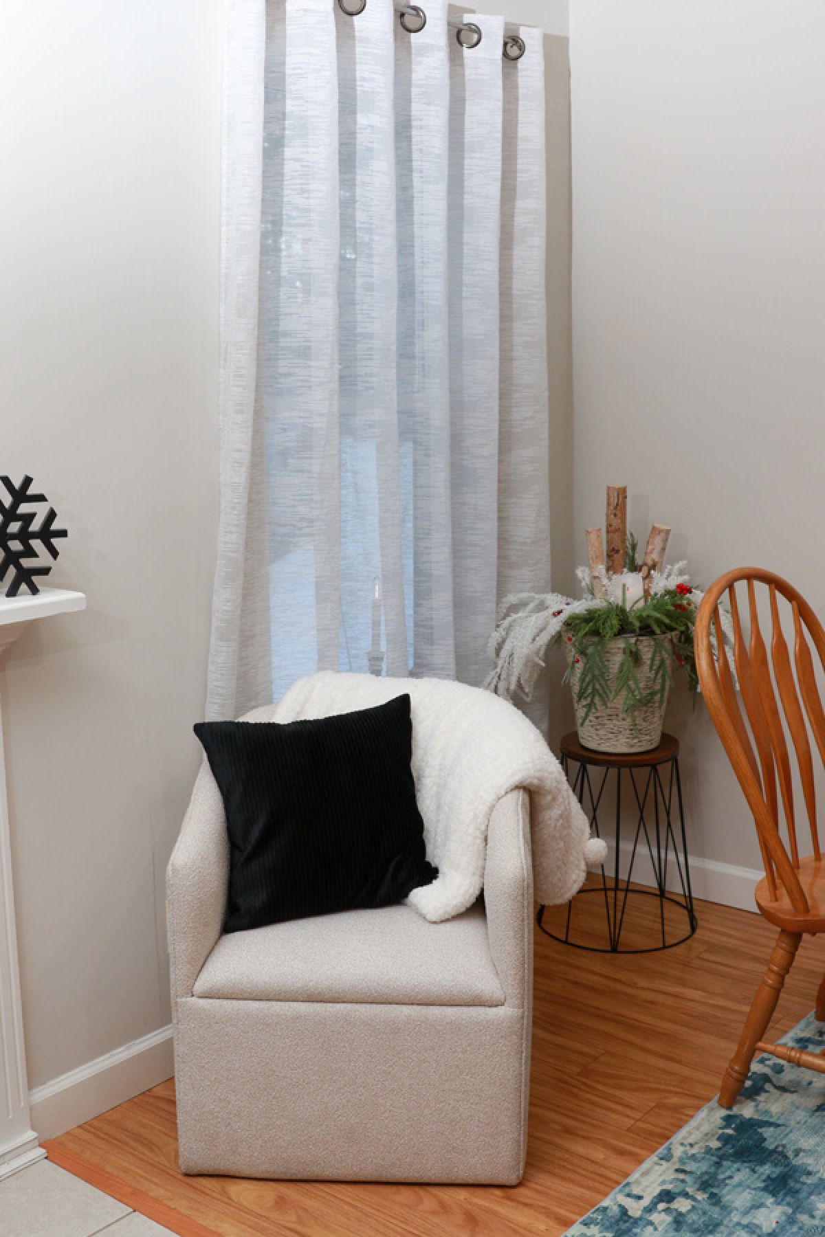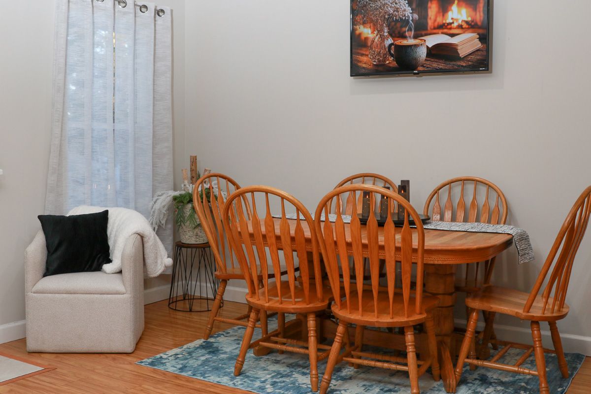 After deciding to move the couch to the living room, they created a more ethereal entertaining experience by instead filling the space with two wheeled armchairs flanking the original wood-burning fireplace and a farmhouse-style table that can be turned and extended to seat 12, providing plenty of seating for when the family gathers together for a good meal.