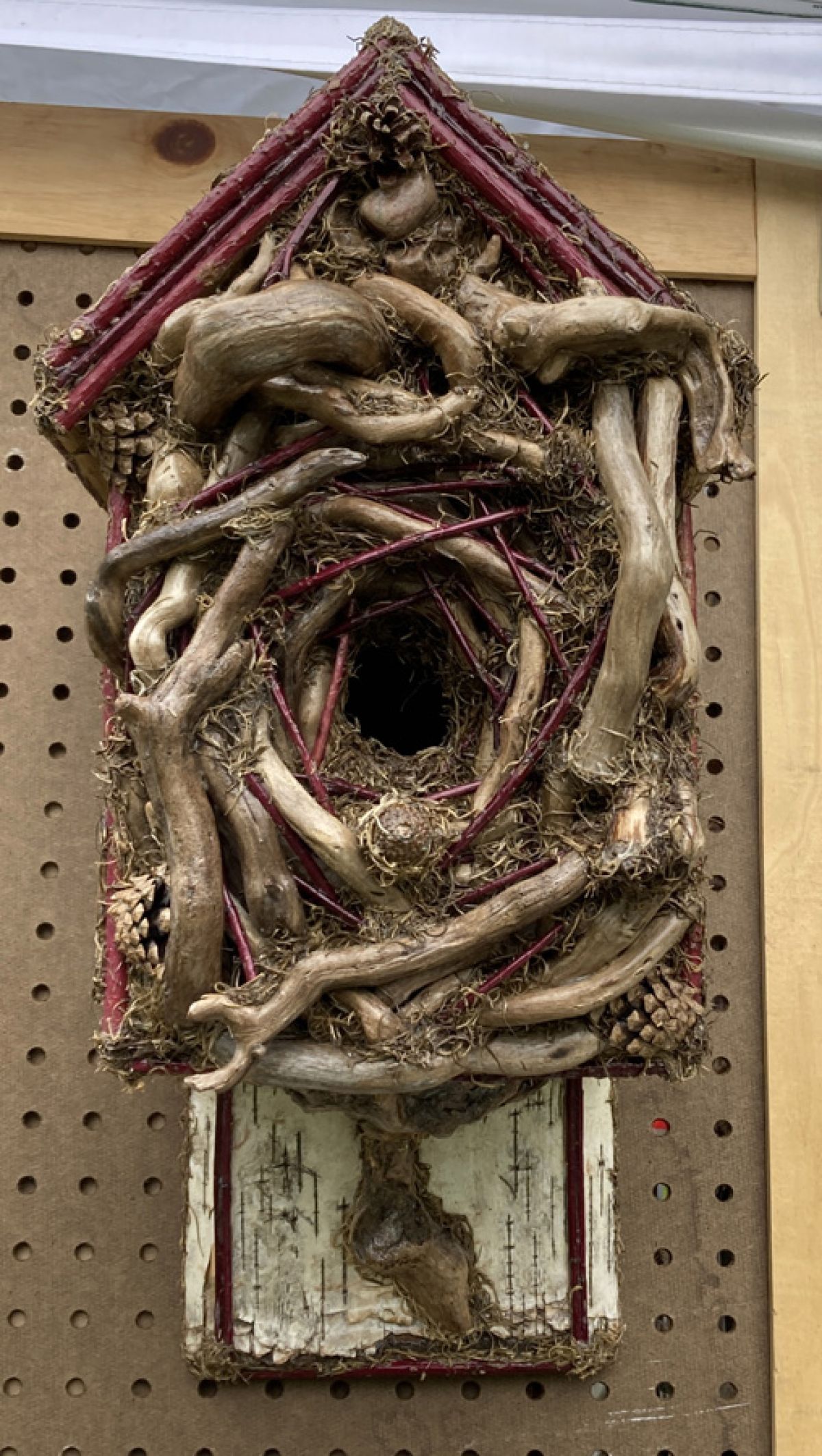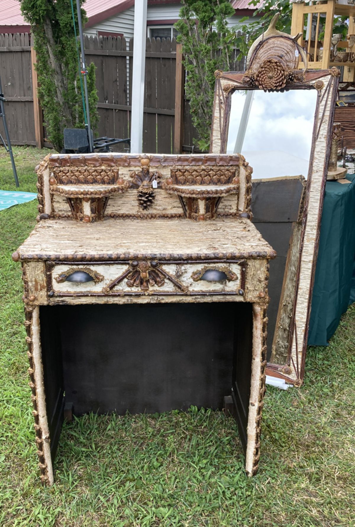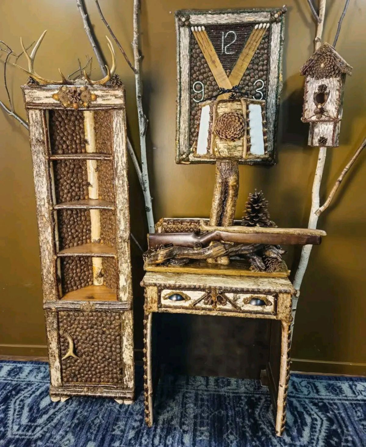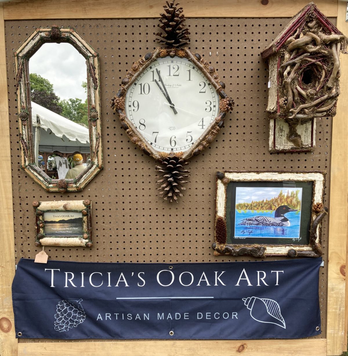 Every piece of furniture, birdhouse, clock, mirror, picture frame, or candle crafted by artisan Tricia Ball of Tricia’s OOAK Art is marked by an intricate blend of diverse natural materials. Everything from twigs, bark, pinecones and nuts to roots, mosses, antlers and flowers have found their way into Tricia’s distinctive line of artisan-made décor.