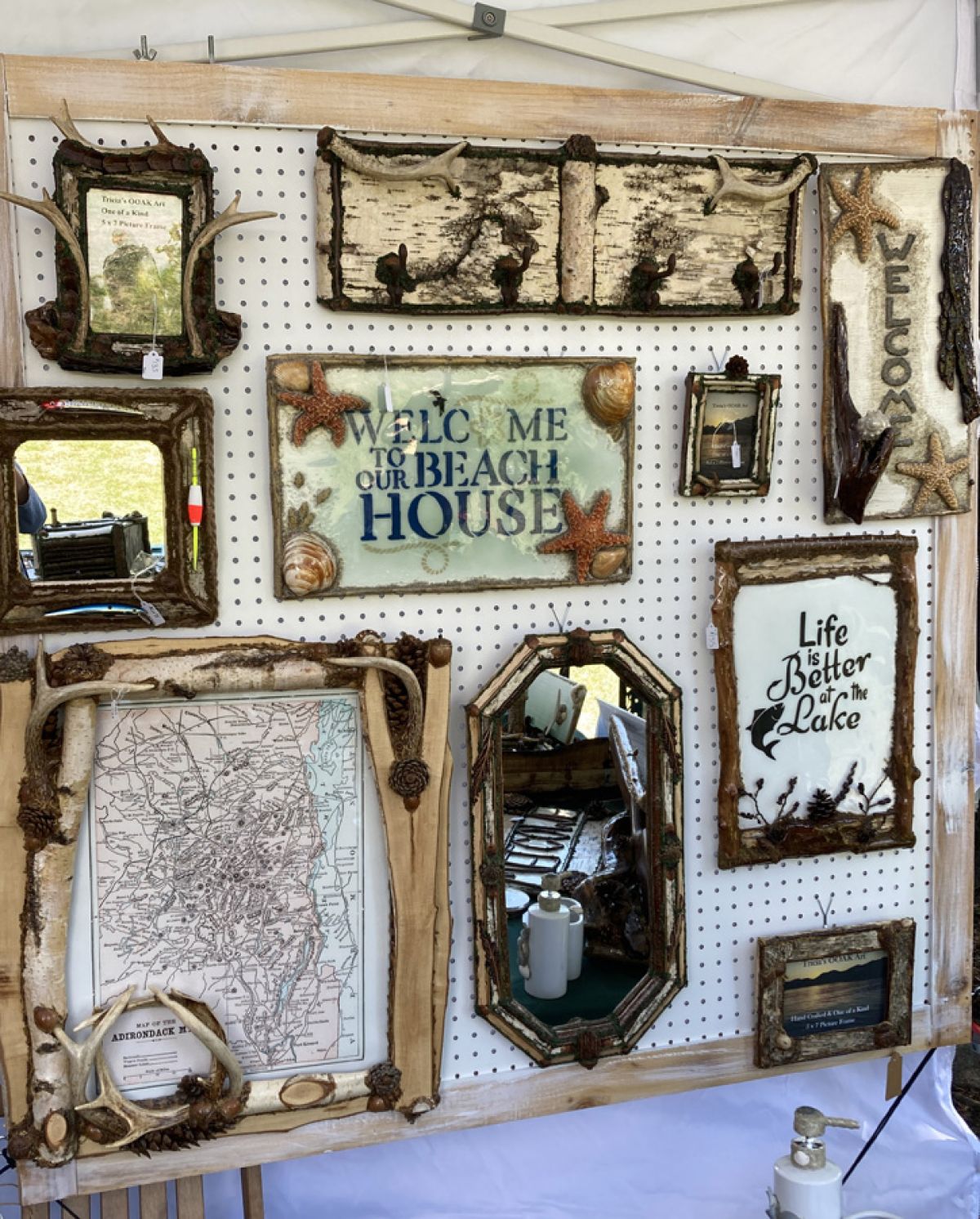 The creative process came to Tricia’s rescue in 2013 when, after enduring years of personal trauma and addiction, she found herself in desperate need of a safe place to express herself, create, and redirect her life. She only crafted a few pieces over the ensuing four years, but with the birth of her son in 2017, Tricia had a life-altering epiphany. “I suddenly realized, ‘Okay, here’s an opportunity to dig in and really explore my creativity.’ I felt like God was nudging me to pursue this gift. From then on, I began creating so many pieces of my distinctive handcrafted décor that, within that very first year, I was accepted into the Rustic Furniture Fair at Blue Mountain Lake.”