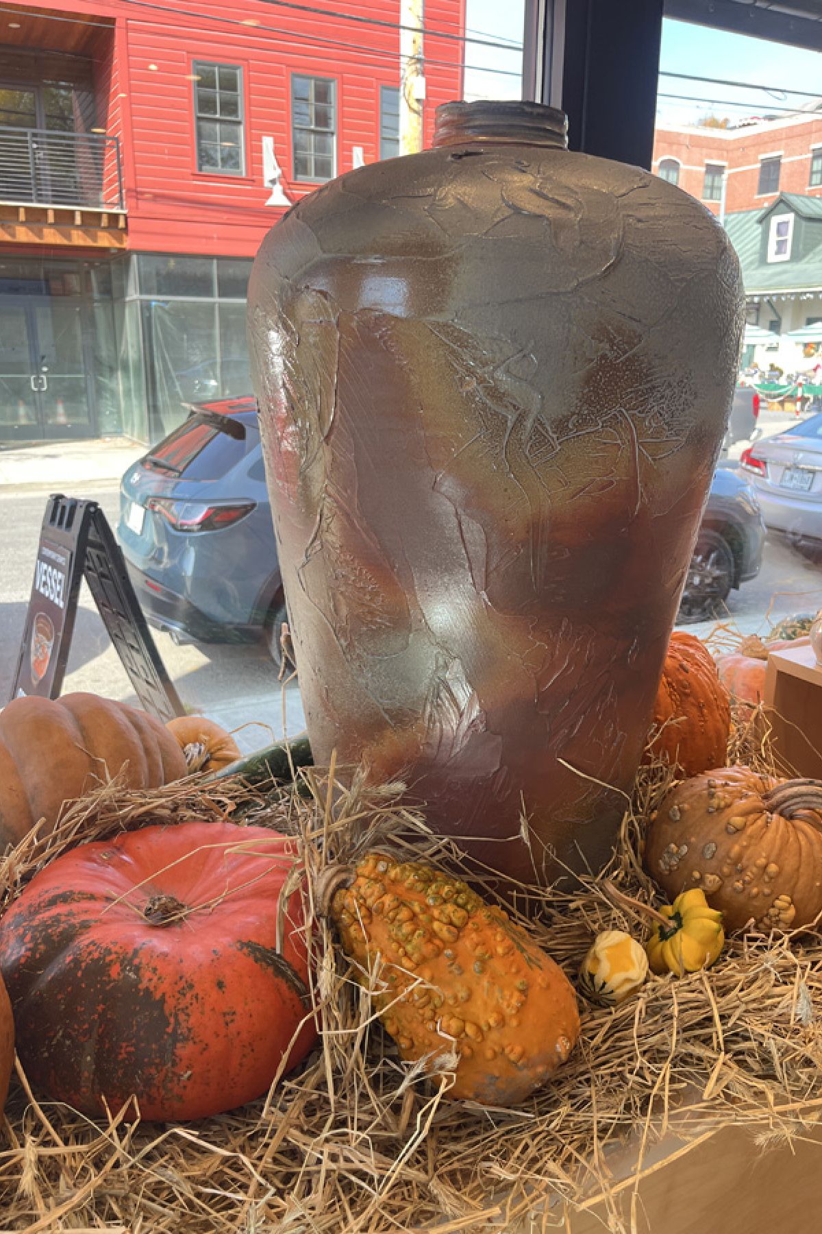 Vessel is currently showing the diverse work of 56 artists, both local and from around the country, chosen for their originality, professional experience, talent, and exposure. This quality work, sold on consignment, includes sophisticated pieces by Skidmore’s Associate Professor of Ceramics, Matt Wilt; those with environmental appeal by Indiana artist Justin Rothshank; and ones sold to benefit an elephant sanctuary by Randi Martin Kish, among others. Every piece includes a short artist bio and a QR code with a link to the SCAC website where you can shop the entire inventory and a different artist is promoted each week. Many of the artists, like local full-time potter Wayne Smith, work on commission, so you can request matching sets, large specialty jars, personalized urns, and more.