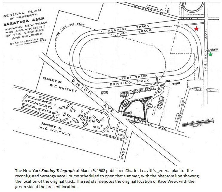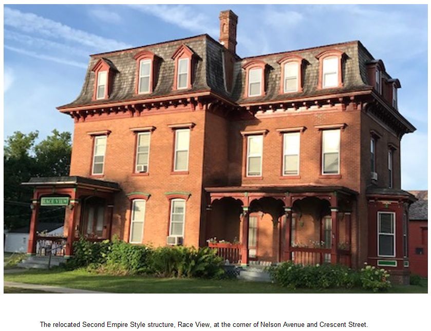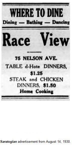 The special arrangement in which things are placed and the way they are drawn together, along with the spontaneous and natural liking of this relationship, may explain some of the affinity many have for the Saratoga Race Course. One long time presence, in desirable contiguity to the race course is the mansard capped brick structure on Nelson Avenue at Crescent Street known as Race View. The propinquity between building and track extends far back in time, although neither occupies their original location.