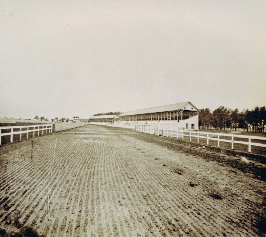 The race course laid out by John Morrissey and his partners in the Saratoga Association in 1864 needed to fit the property they had recently acquired on the south side of Union Avenue, after demonstrating the success of their venture across the street the year before. The track was a one mile circuit, yet many horsemen felt it fell short of that published distance. The racing plant bordered against what would become the Trask estate of Yaddo on Union Avenue and the Gridley Farm, and several smaller properties on Nelson Avenue. Robert Gridley operated stocked trout ponds in the picturesque dell, which during the winter furnished ice for domestic purposes, and Gridley Avenue extended to the east across Yaddo.