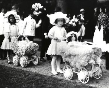 (right) Doll carriage-Residents of all ages participated in the popular floral fetes. Photo courtesy of George S. Bolster Collection