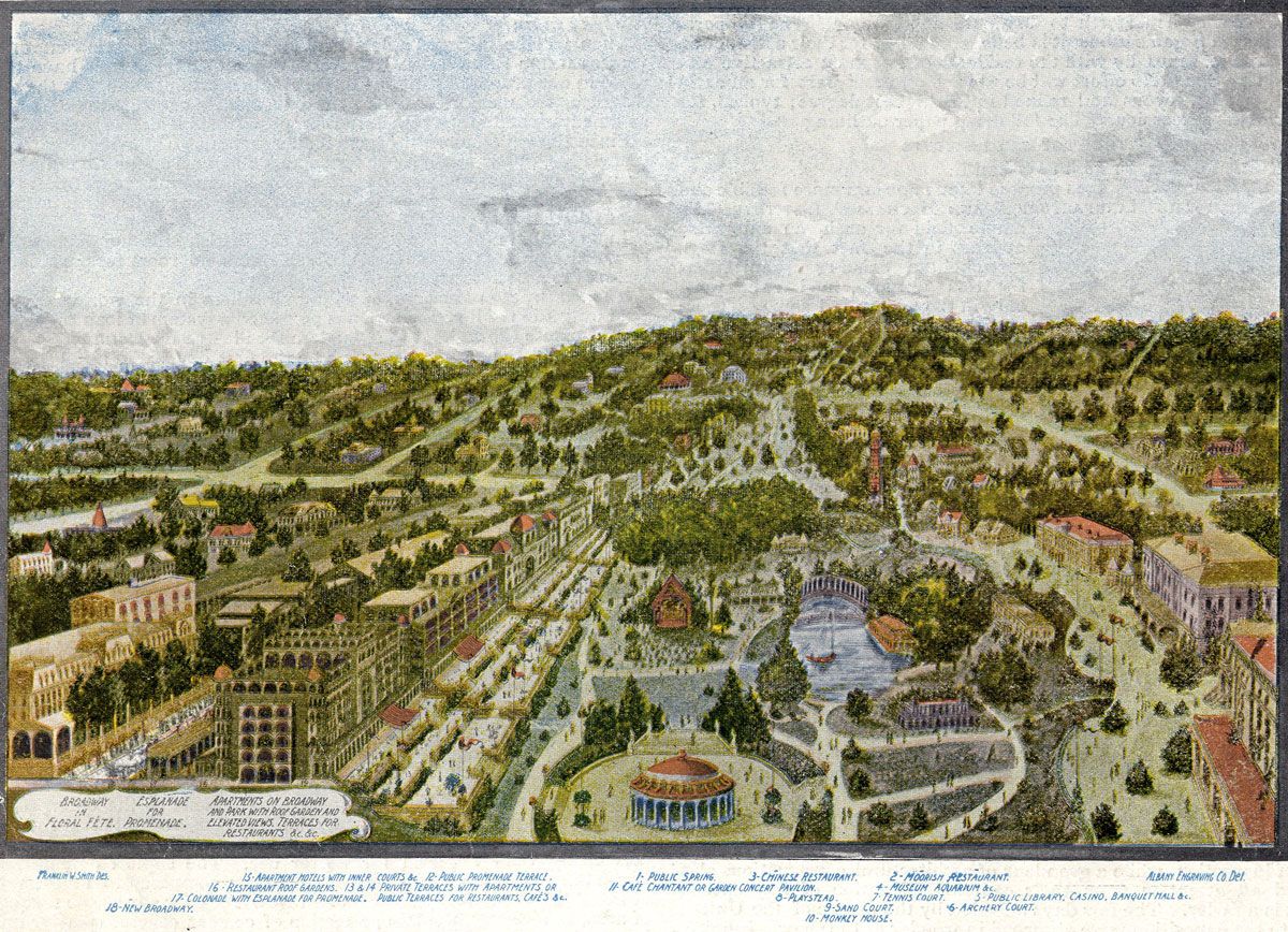 Franklin Smith’s proposed grand plan for “A Greater Saratoga.” He was enamored with Spain and built a Moorish home in Saint Augustine, thus the Moorish Restaurant- clearly a concept Saratoga wasn’t ready for.
