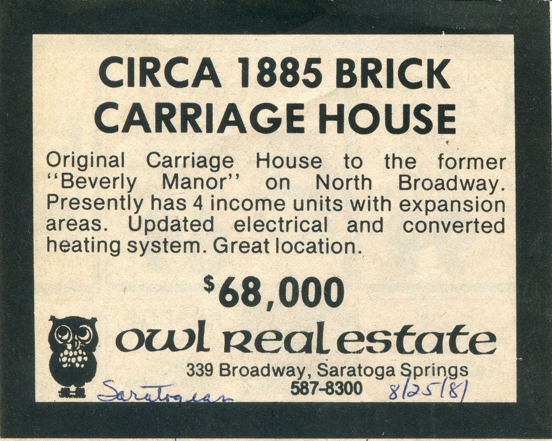 Harry Quadracci, founder of Quad/Graphics, purchased the house in 1984 - the same year that his company built a large printing plant in Saratoga Springs at Grande Industrial Park.