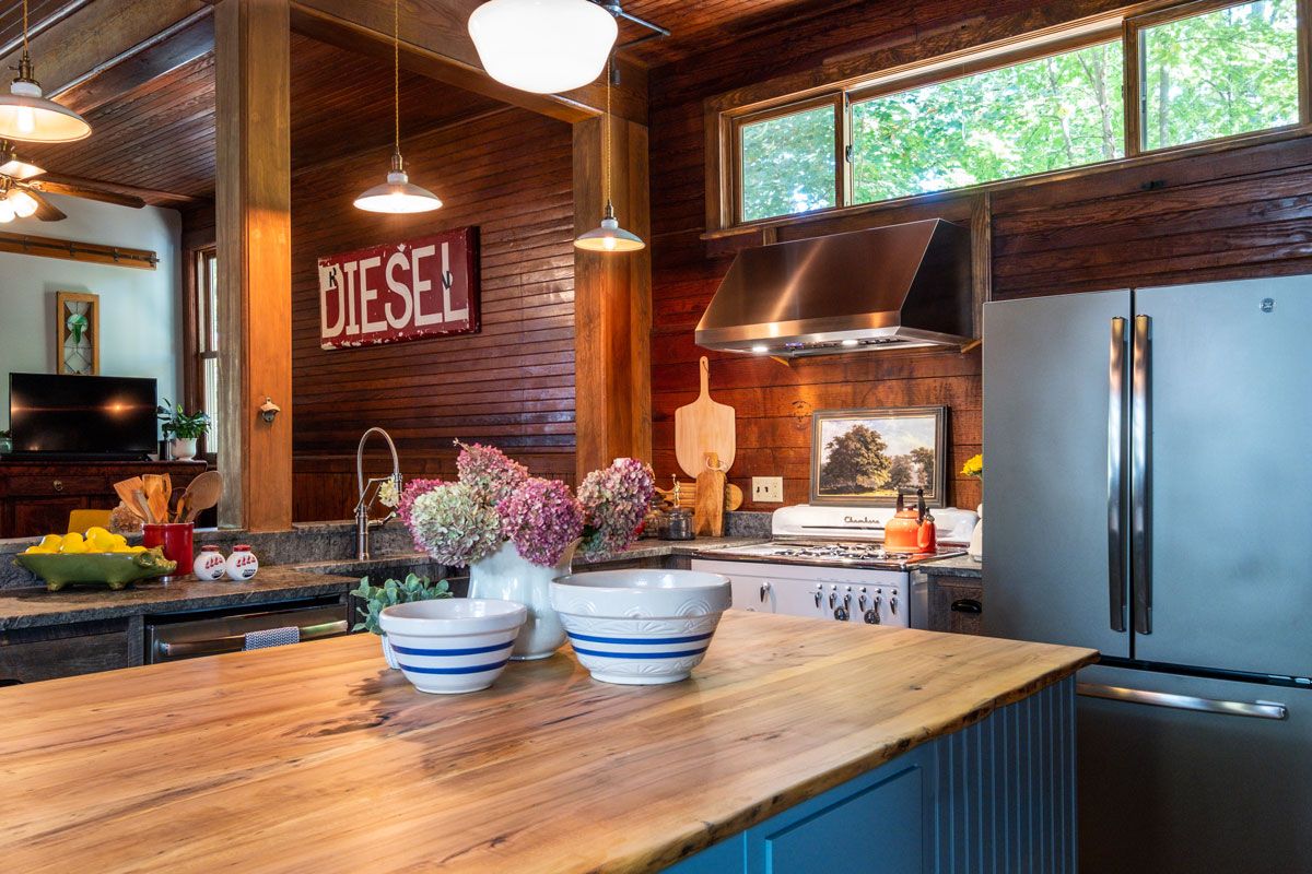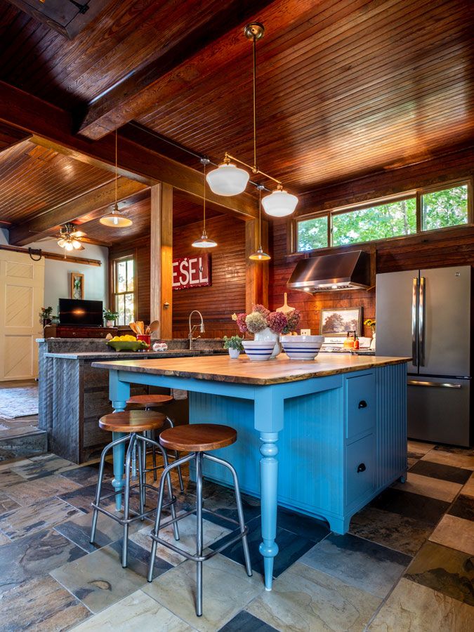 After living in the home for fifteen years, the Annis’ called upon the help of local designer, Michele Ahl, of 2B Design, LLC and her cabinet maker, Chris Reed of Ridgewood Cabinet Shop to fashion a custom kitchen with barnwood cabinets and a center island.