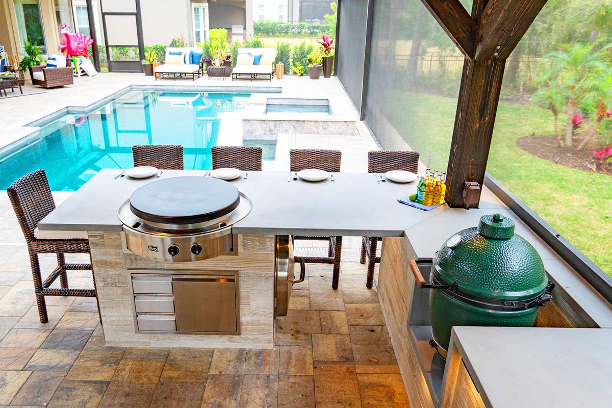 After you’ve determined which appliances you want, the cabinets tie everything together. Even with covers, water can seep into surfaces, so Zobel recommends the durability of NatureKast cabinetry for everything from the outdoor bar and cooking center to the trim and decorative moldings.