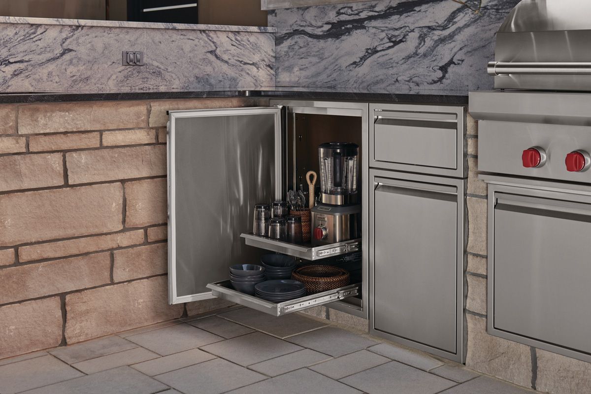 Add stylish living space to your backyard or boathouse by upgrading your patio, deck, or terrace with grilling and cooking appliances, refrigeration, wall storage, tv and gaming cabinetry, and more.
