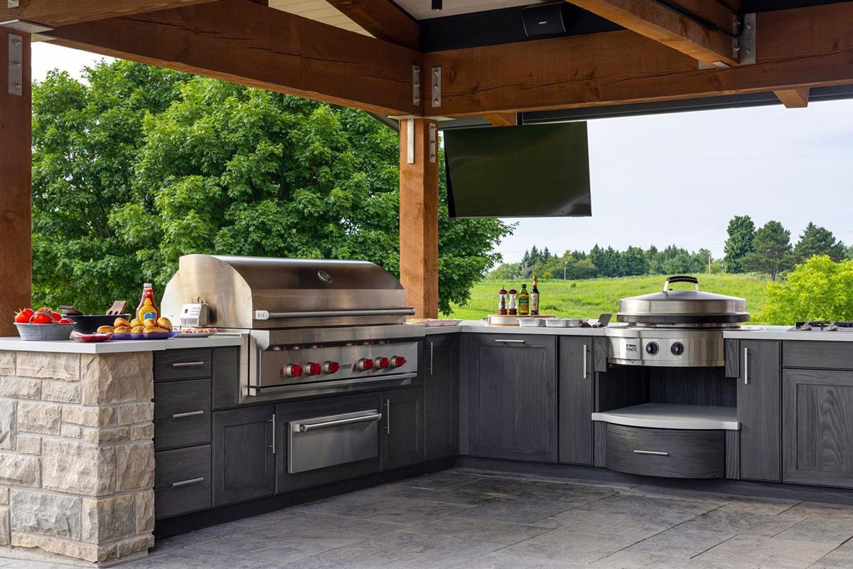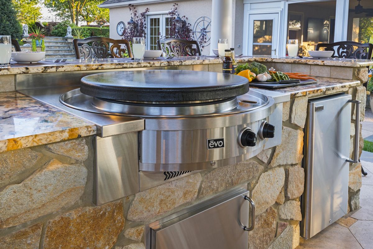 After determining the location, the next step in planning an outdoor kitchen is choosing the appliances. Everything else, like countertops and cabinets, are determined by the number and size of appliances a space will accommodate.