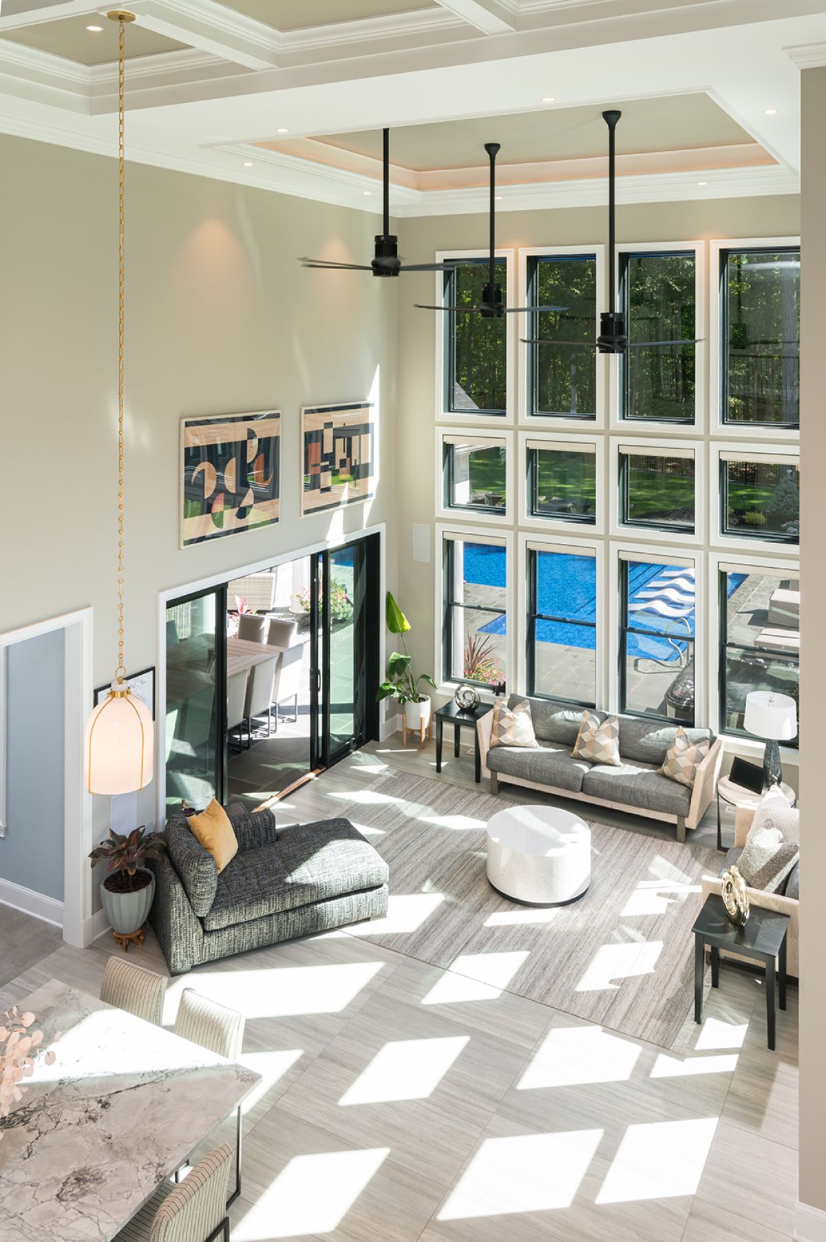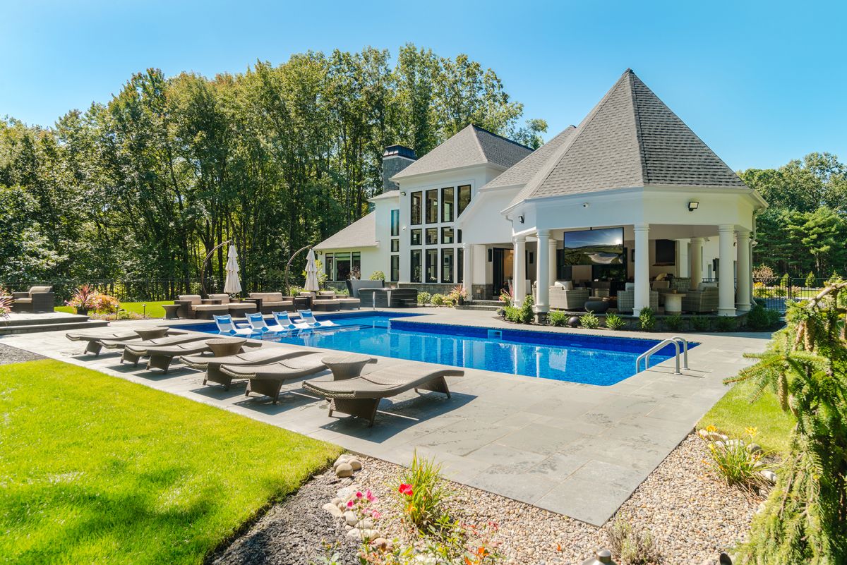 Summers spent lounging by the pool add sunny style to a modern traditional family home.