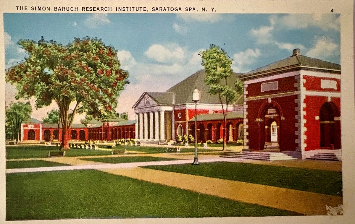 Scientist Simon Baruch, American pioneer in hydrotherapy, was in his 70s when he spent months in Saratoga conducting clinical experiments in the use of mineral waters. Although he died before the laboratory was completed, his son Bernard Baruch sent a telegram, “This is a particularly happy day for me as the dream of my father to have a place where the suffering could be healed and made better able to face their daily problem comes true.”