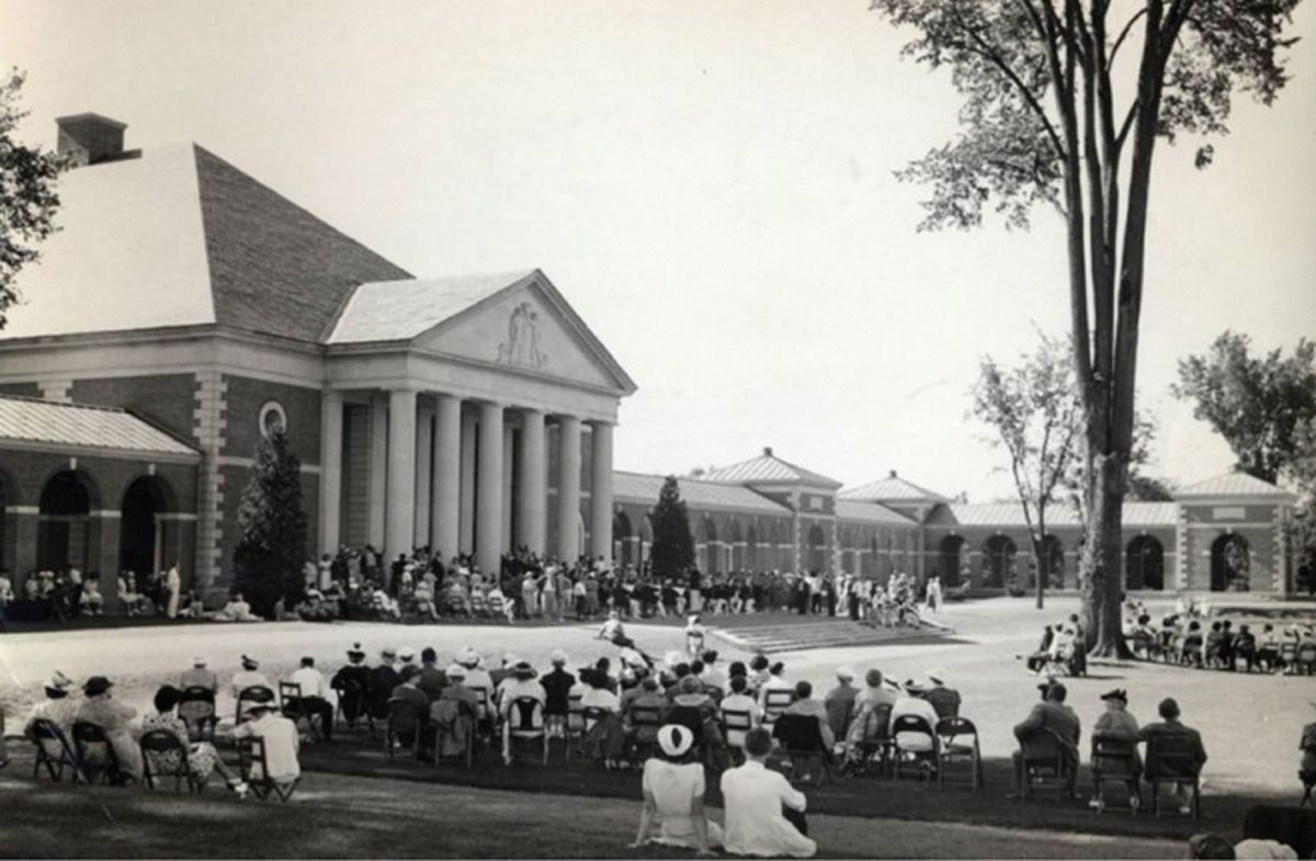 Before zeroing in on this classic Harvard red brick building with limestone columns, it helps to step back to the turn of the 20th century, when Governor Alfred Smith created a special commission to explore developing a complete spa in Saratoga Springs. At that time, the land we now know as the Saratoga Spa State Park was a patchwork of individually and business-owned parcels. A 1935 map of acquisitions shows that the land where the Spa Little Theater stands today was once part of a 5.08-acre tract owned by Dr. John Clarke. This parcel, along with neighboring holdings, was absorbed into the Saratoga Spa development during the 1930s, providing the site for the theater that opened in 1935.