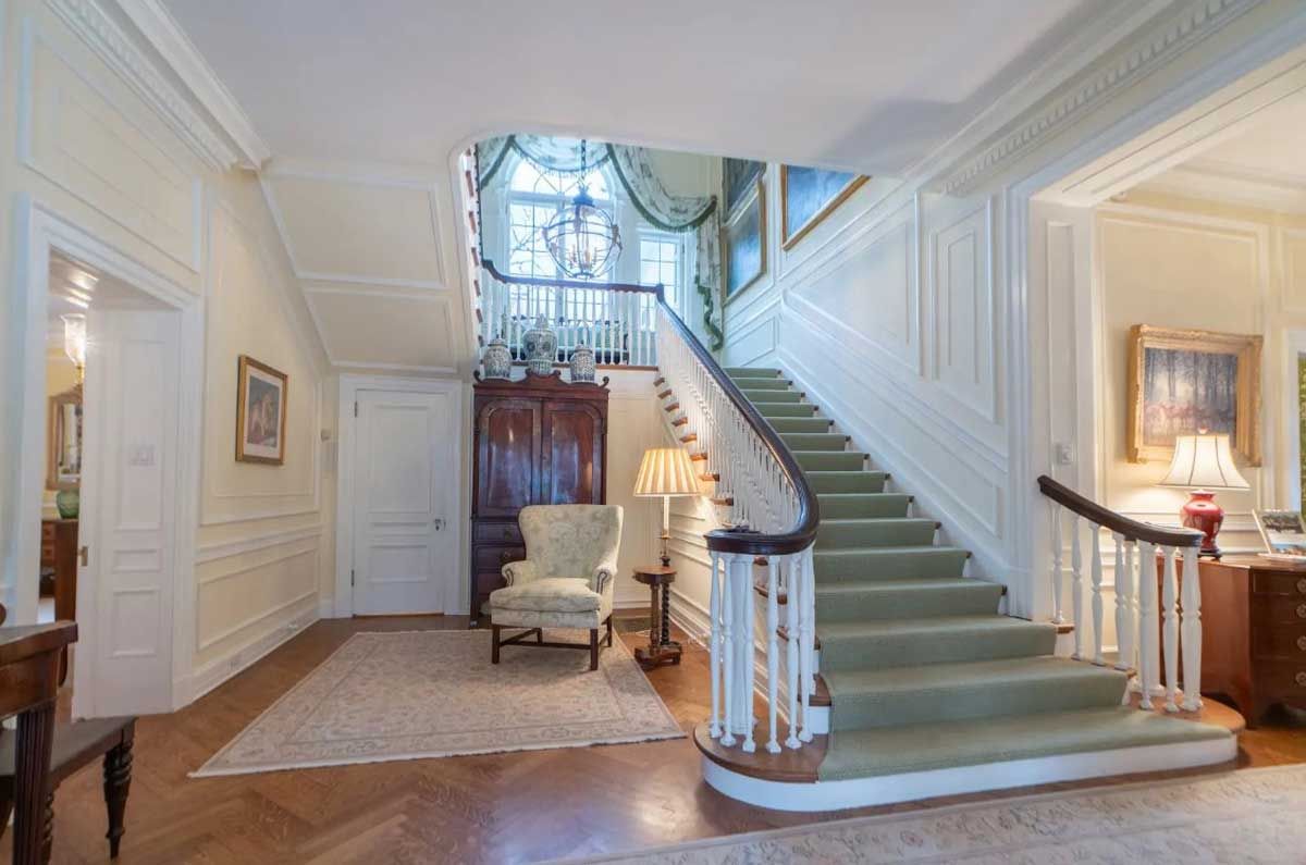 a large modern brick House, with ‘port cochere,’ piazzas on three sides: on first floor, large hall, billiard, reception and ball rooms, parlor, dining room with large butler’s pantry, kitchen and servants’ offices: second floor eight bedrooms, dressing rooms, and baths: third floor, four bedrooms and bathrooms, and three servants’ rooms: plenty of closet room on all floors: house is fully furnished: large coach house, harness room, stalls for five horses, two rooms in loft.