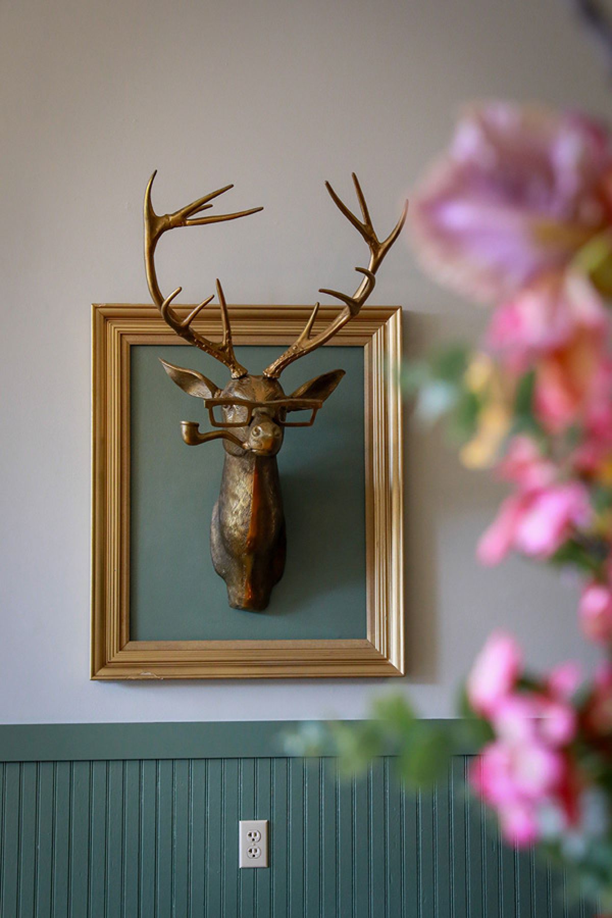 Juniper is tucked between trendy boutiques, food and gift shops, and a central hub called ‘Gather,’ where folks can get together, meet people, and celebrate area events. “The restaurant was named Juniper because, to me, the word channels the freshness of our bucolic surroundings and fits in so perfectly with Greenwich's lively, historic Main Street,” Michele explains when we have the chance to chat, as we wander around inside the charming space she calls her own. “I love the crisp, pretty colors associated with the name. I’ve tried to incorporate that thread thoughtfully throughout the restaurant.” Chris asks if it was a daunting task getting this space to look so charming and contemporary, and we watch Michele grin. (She may have even rolled her eyes.) “Let’s say reinventing the space was a fun and rewarding experience! Selecting the wallpaper was first, then choosing the colors and chandeliers, followed by some eclectic twists like Frank the Stag, the old, gilded mirror, and interior window boxes...”