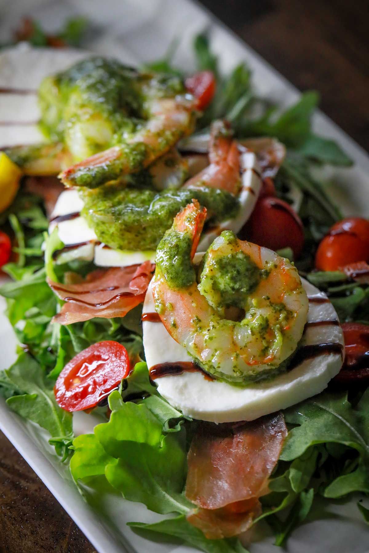 The Juniper Salad is perfect and could be a meal on its own, with grilled chicken, delicious beets, crispy bacon, sliced red grapes, avocado, pickled red onion, and crumbled blue cheese on a bed of fresh mixed greens and a honey mustard vinaigrette. I bet it’ll be a huge hit come summer. We also split the Shrimp Bruschetta Salad – very impressive! Balsamic and pesto-glazed shrimp on a bed of arugula, tomatoes, mozzarella cheese, crispy prosciutto – perfection! I’ve never had crispy prosciutto, and the taste is incredible, not salty at all – we’re all fans!