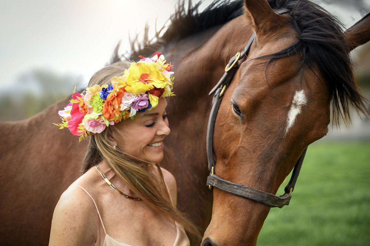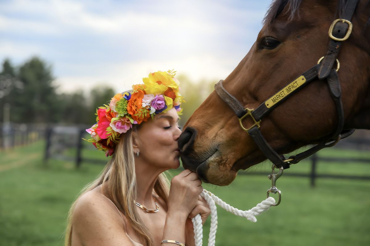 Anna Hollander, with Market Impact, an 8-year-old colt in After the Races NY, a boutique Thoroughbred Retirement program located in Saratoga Springs.