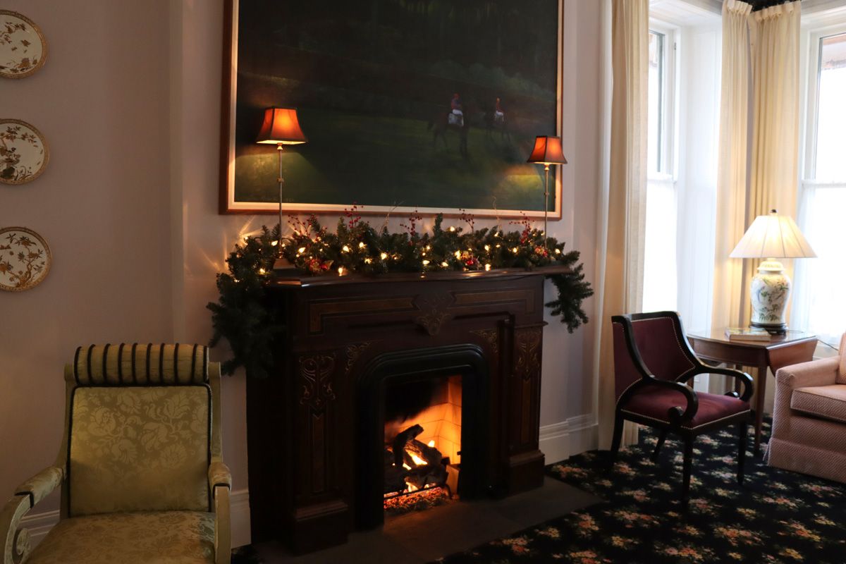 Everywhere I look, I see nods to the past: plaster and tin ceilings, gorgeous grand staircases leading up to other floors, and the fireplace in the main common area—one of fourteen originals, eleven of which have been restored. I fell in love with the call box (annunciator) behind the front desk. Amy told me it comes from the former Excelsior Springs Hotel (long gone) here in Saratoga Springs.