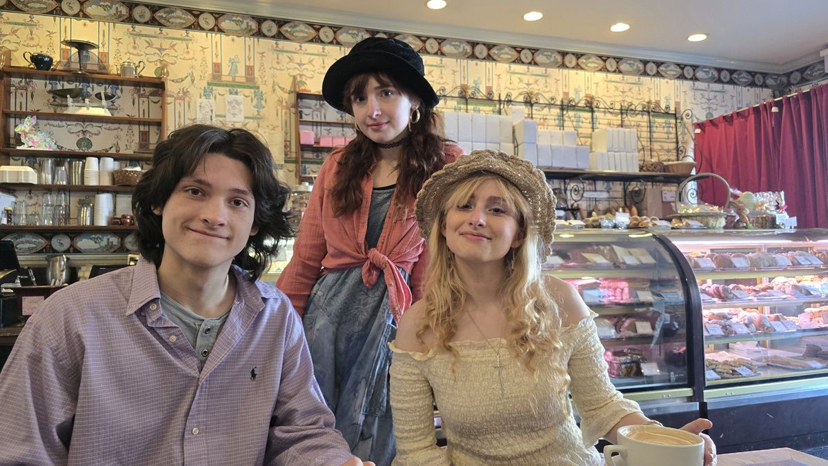 Fast-forward to 2025. I saw on social media that the trio had been working together over the past couple of years creating a band, and that a new album had just come out. What? I knew it was time to talk to them again. Were these three young people truly this talented? It seemed like everything they put their hand to, came to pass in a positive way. I asked if they could chat with me in person at Mrs. London’s – a fantastic Parisian-style café on Broadway.