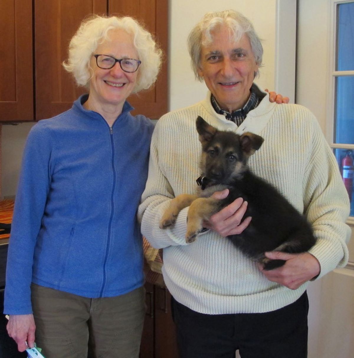 ← Author Richard Matturro and artist Mary Trevor Thomas welcome their newest German shepherd, Skylix.