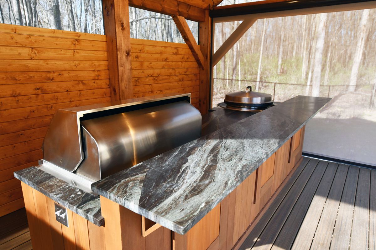 1. Best materials for an uncovered outside space are leathered or honed granite and porcelain. For covered areas, there’s more options, but ask first!