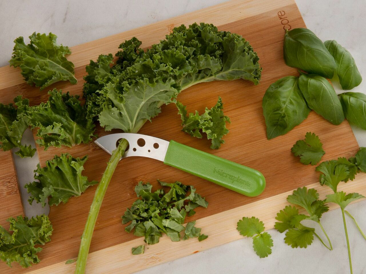 Microplane also carries products to help with your herbs. The SwiftStrip is the answer to all your leafy green food prep problems. You'll be able to strip the leaves off herbs, kale and all of your favorite leafy greens with ease. Or try the herb mill. Just place your parsley, cilantro, dill, sage, basil, sprig of thyme and mint in this easy-to-handle herb mill and twist away for perfectly minced and chopped herbs.