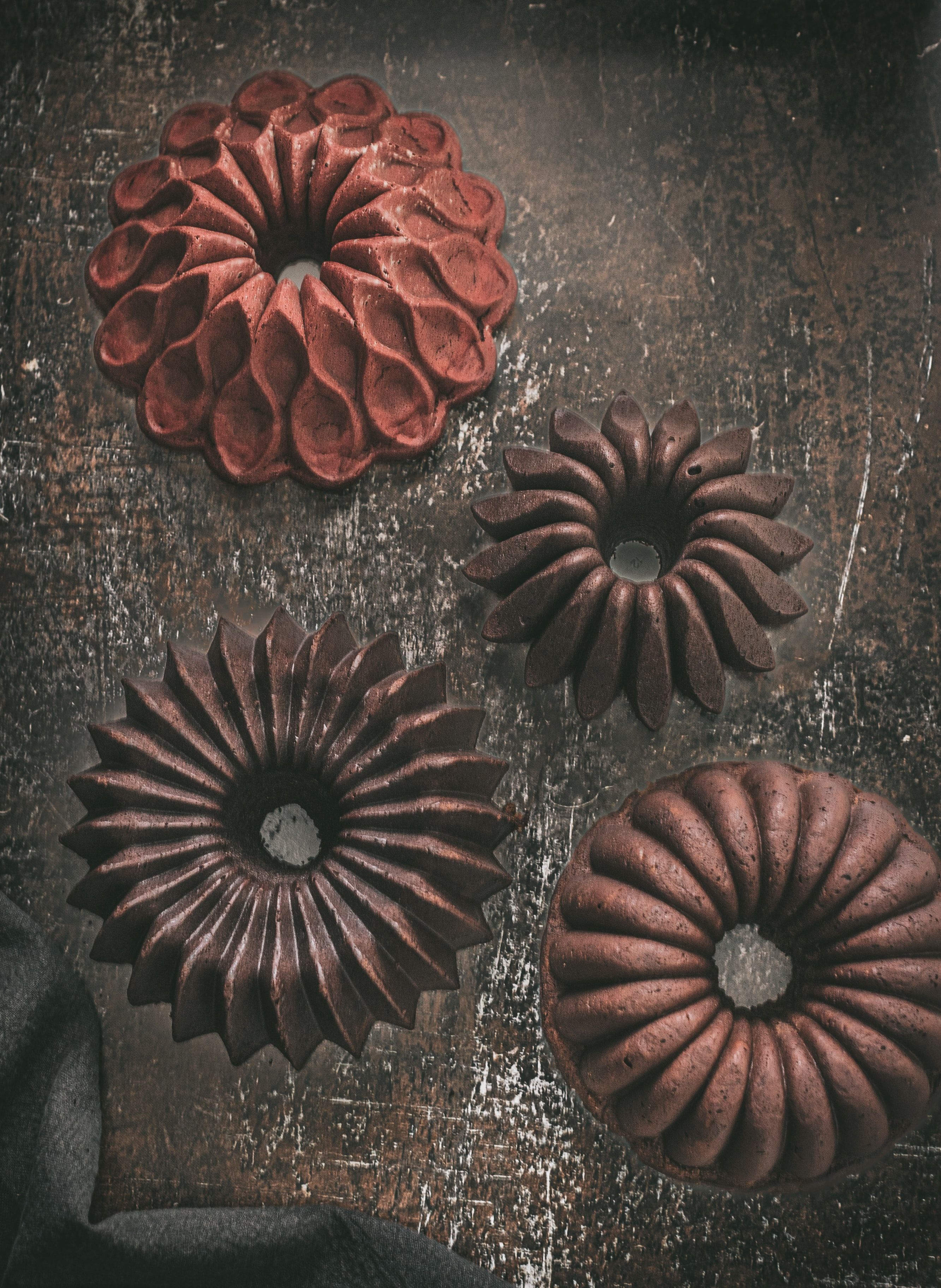Bundt cake pans are cake pans that are usually 10” – 12” in diameter and are 5” deep with a hole in the center. This ensures that deep cakes can bake evenly. They usually have fluted or ridged designs to make your cake look impressive. The cast aluminum version was trademarked in 1950 by the founder of Nordic Ware, the largest and certainly most well-known maker of Bundt-shaped pans., the Nordic Ware Bundt pans are made in the U.S.A. There are a ton of recipes out there calling for Bundt pans, and you won’t find another pan that can do the job as well. There are many other uses for Bundt pans. You can bake any cake, meatloaf (fill center with mashed potatoes), various breads including Monkey bread or garlic bread, and jello!