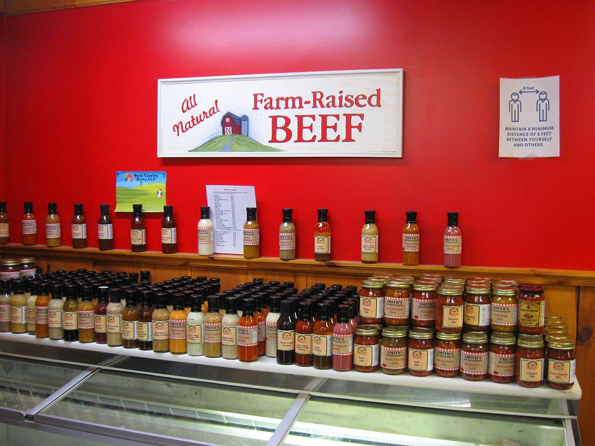The bake shop also makes its own apple cider donuts daily and carries an extensive line of Smith’s farm-raised beef and pork products, all hormone- and antibiotic-free. A list of the nearly 40 cuts of meat available can be found online. The bake shop carries apples from the Smith family’s orchards as well as an impressive line of local products, including maple syrup, cider (in season), honey, Palatine cheeses, handmade gourmet ice cream, carrot cake, cheesecake, jams, jellies, pickles, and assorted relishes.