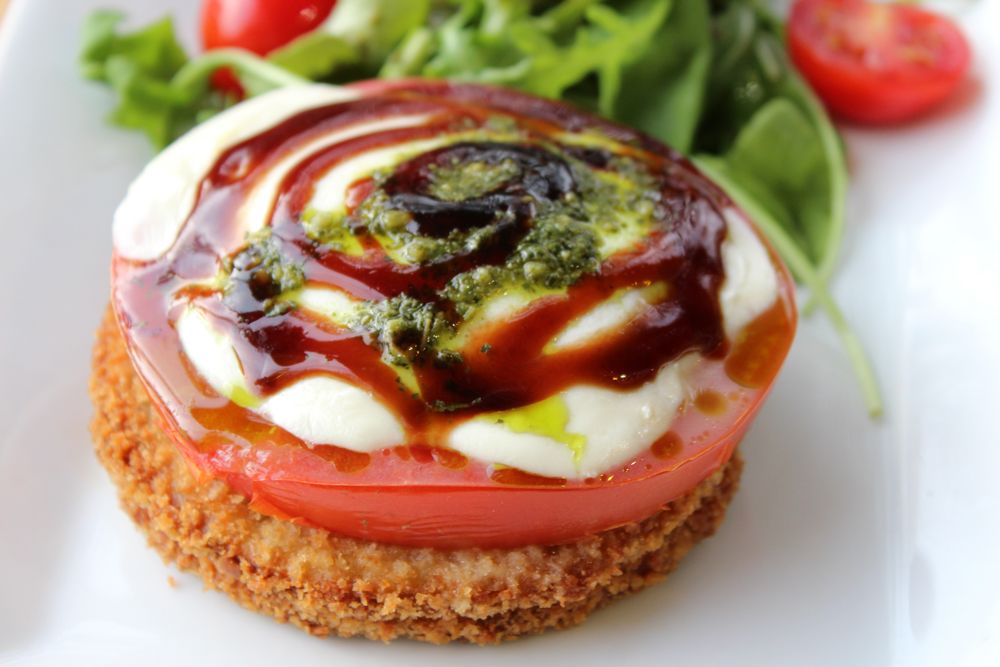 As we all know, eggplant can be bitter if not prepared properly. At Wheatfields, the Eggplant Napoleon is perfection! Stacks of thickly-sliced, panko breadcrumbed, crispy eggplant – topped with ripe, juicy tomatoes, slabs of mozzarella cheese, homemade pesto, balsamic glaze drizzled over the top, a few pinched-off leaves of arugula to finish it off – mmm! Take one bite of all those flavors and you won’t need to wonder why the appetizer disappears so quickly.