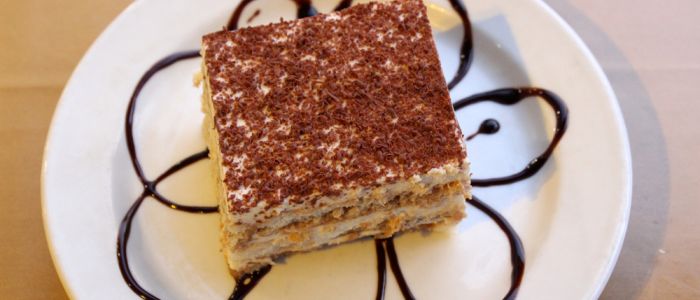 In Italy, Tiramisu translates to ‘a pick me up.’ This rich treat blends bold flavors of cocoa and espresso with mascarpone cheese and wine, spread between layers of biscuits known as ladyfingers. It’s an after-dinner indulgence to satisfy any sweet tooth, a perfect ending to any meal.