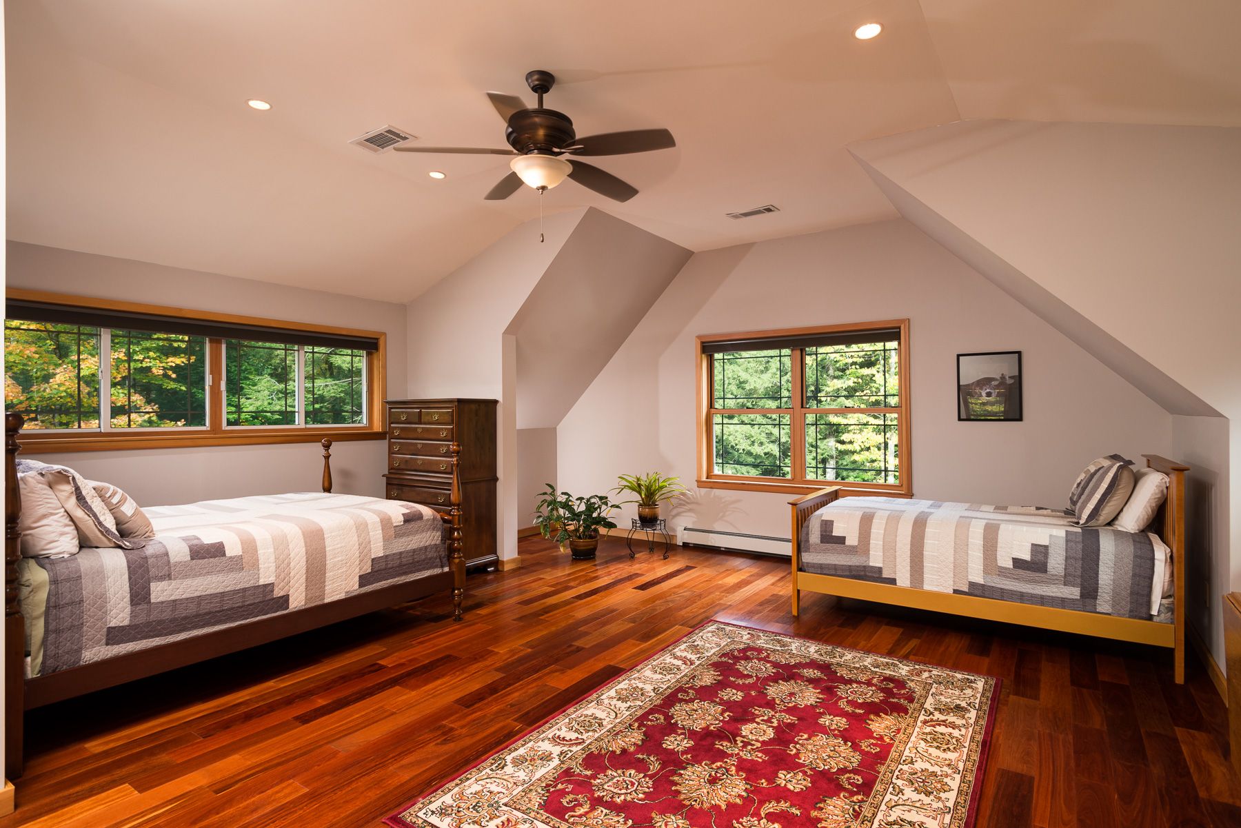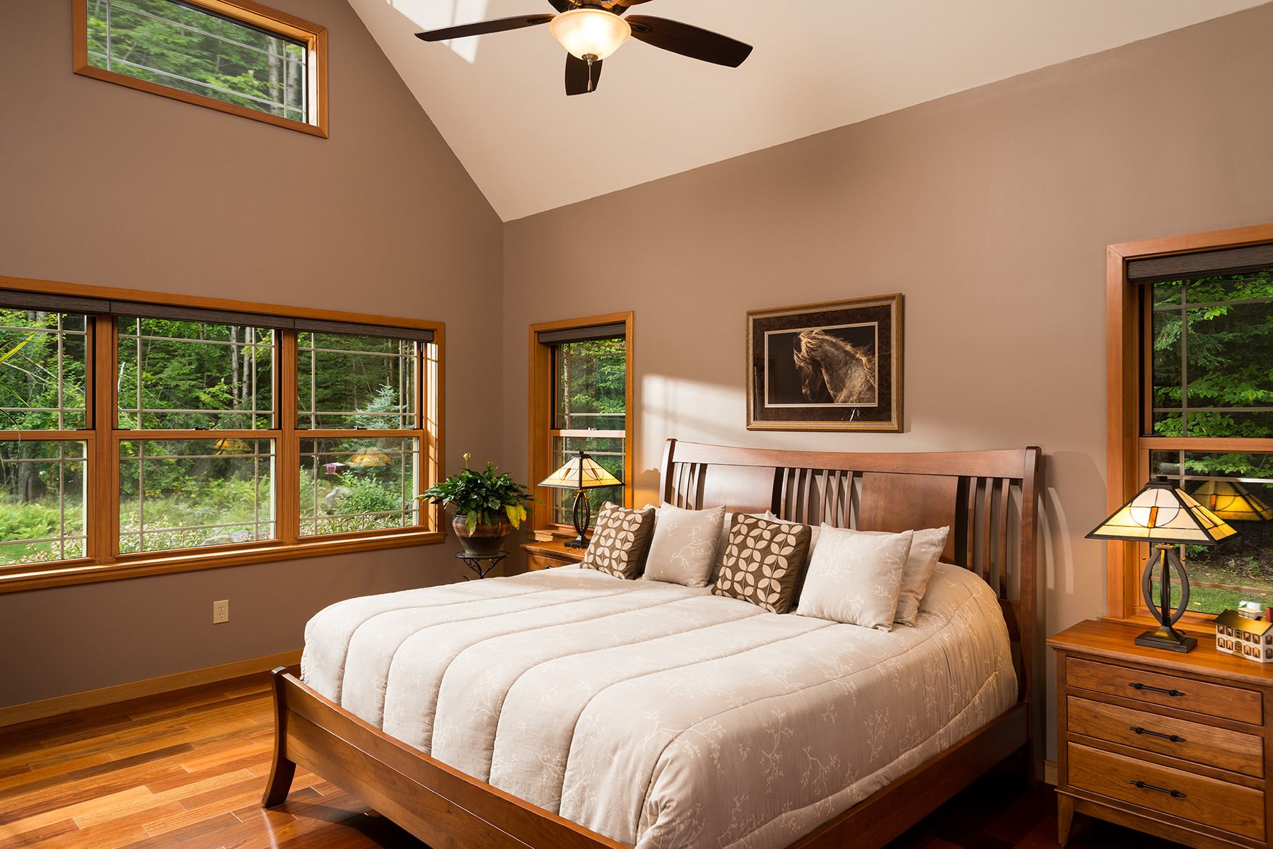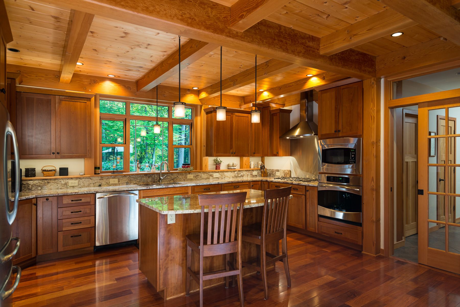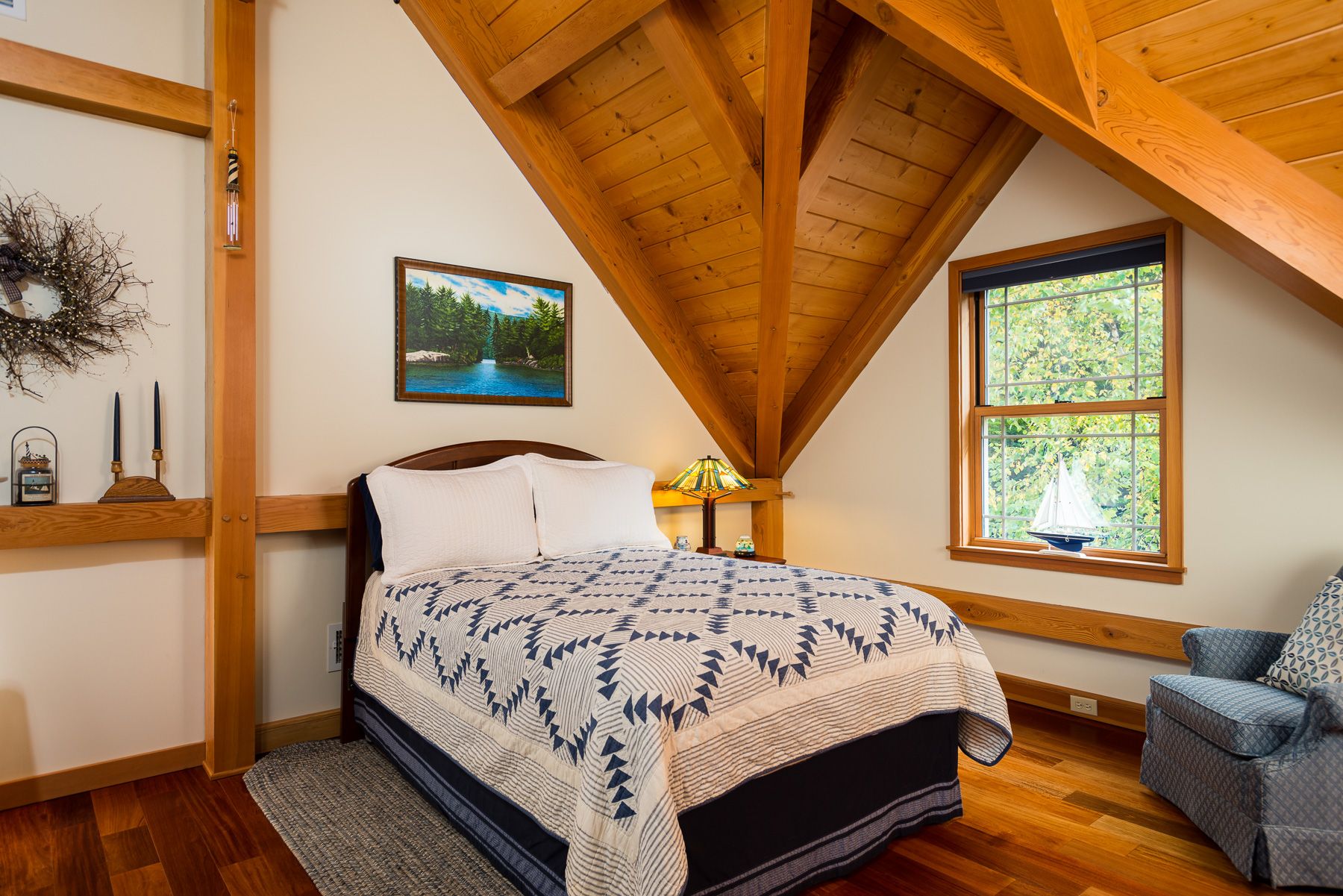 Cathedral ceilings, exposed trusses, walls of windows, finished basement, five bedrooms and three and a half bathrooms fill out this 6502 SQFT amazing home. Comfortable and energy efficient in any season with airtight Structurally Insulated foam Panel construction (SIP), Hydronic radiant floor heating and cooling system with dual air handlers. Every window of this Rustic but Elegant home frames a beautiful picture of the outdoors each day.
