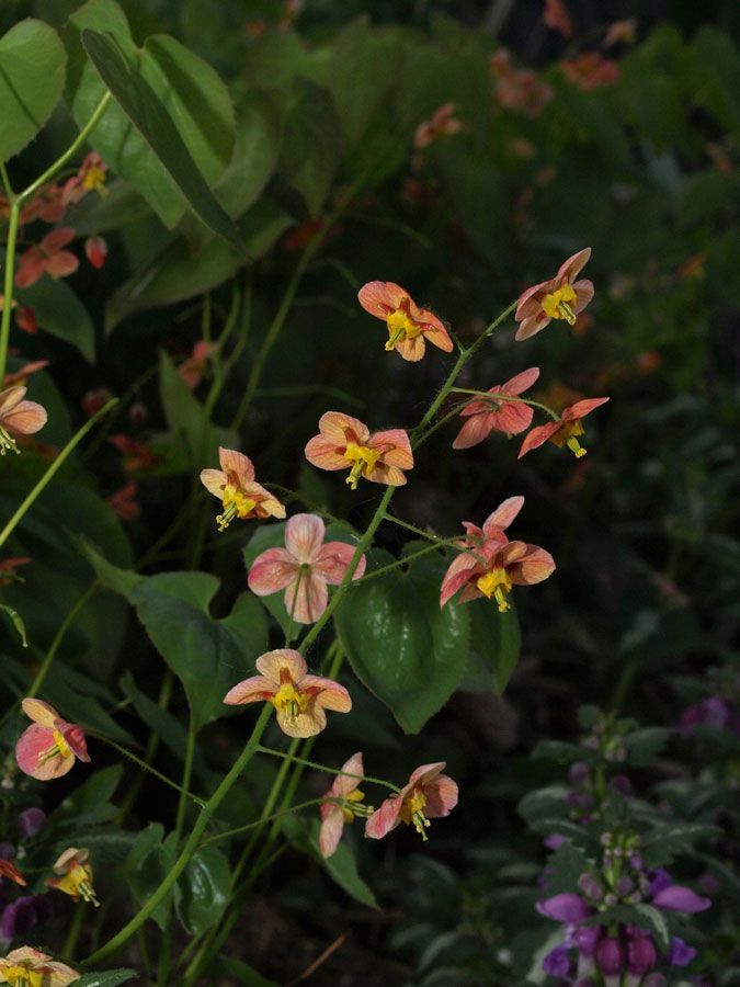 Epimedium have become popular and rightfully so. They produce drifts of tiny ornate flowers in red, pinks and yellows and the foliage will bronze at the edges adding interest even after the flowers are done.