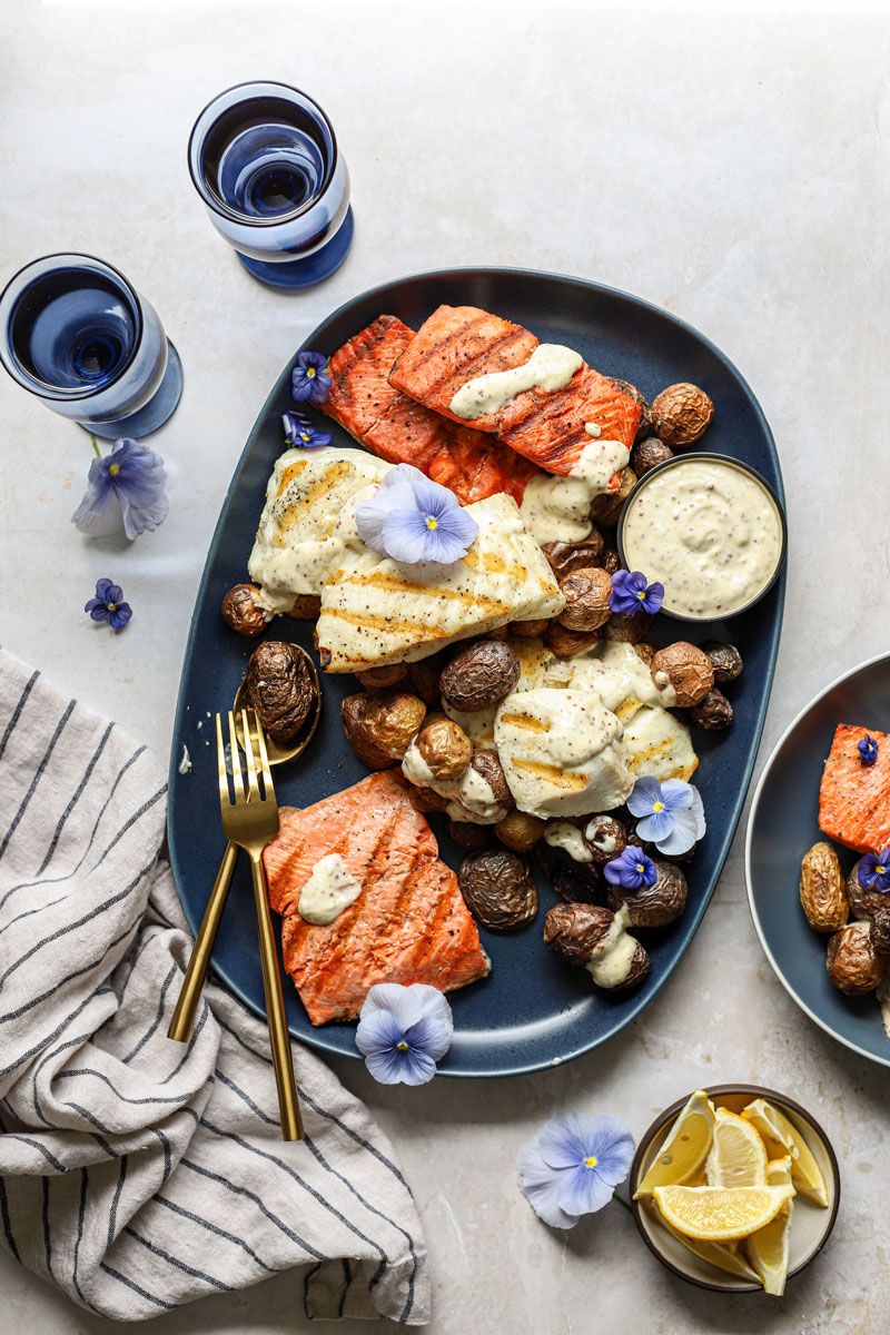 "There are several ways I approach developing a recipe or composing a photography scene. Sometimes I find inspiration in a single ingredient, either something fresh and beautiful in my garden or at the Farmer’s Market, or simply something that needs to get used up in my fridge. Then I build the layers of the dish and image by thinking primarily about colors, but also textures, seasonality, flavors, and props. Sometimes I develop an image based on the mood I would like it to have, maybe I want it to be richly monochromatic or full of contrasting colors. I think about the light I would like to use and the feelings that it will evoke. The soft morning light that hits my studio creates a feeling of coziness and calm, where as the bright and sharp afternoon light has a cheerful fun vibe and creates beautiful shadows through glassware that I love."