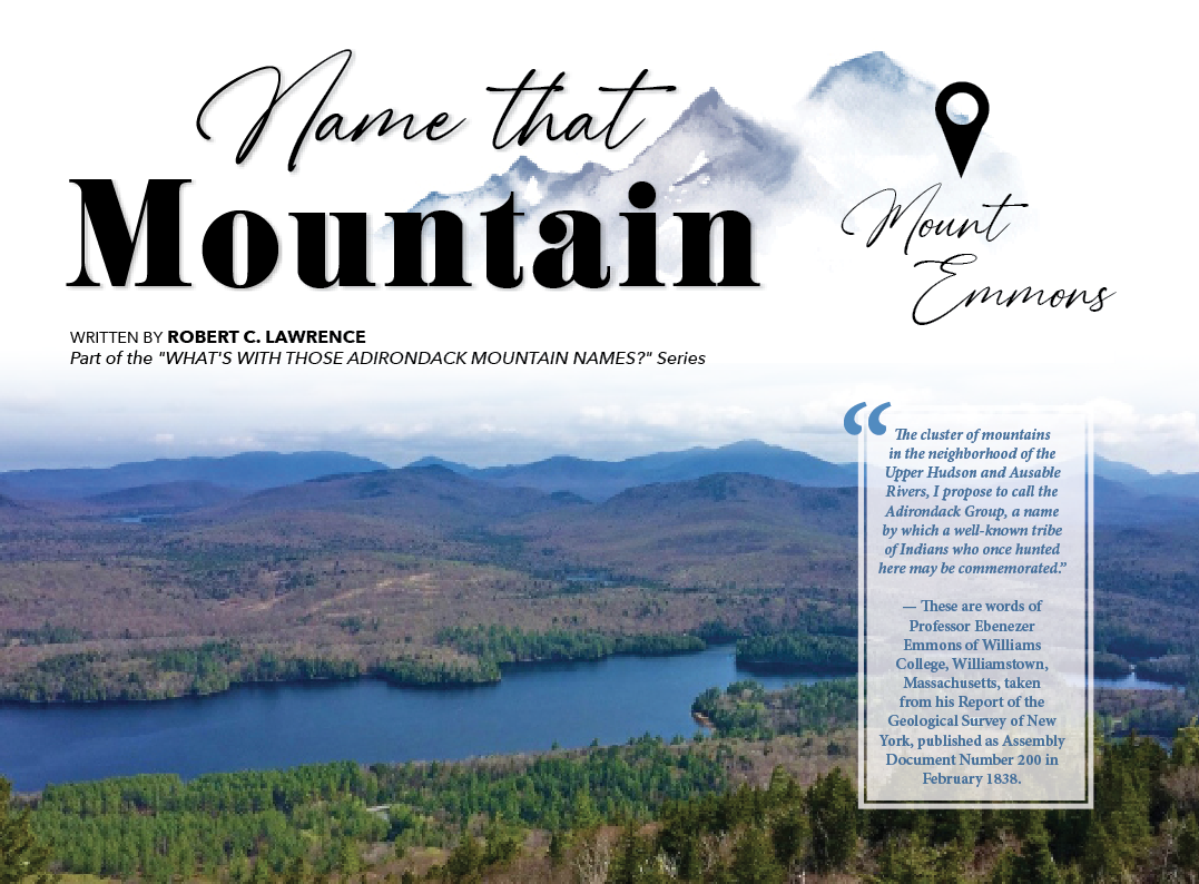 Mount Emmons, originally South Seward Mountain and one of New York's forty-six highest peaks, is in Harrietstown, Franklin County. It is a fitting tribute to one of the most prominent geologists in New York and America in the nineteenth century.