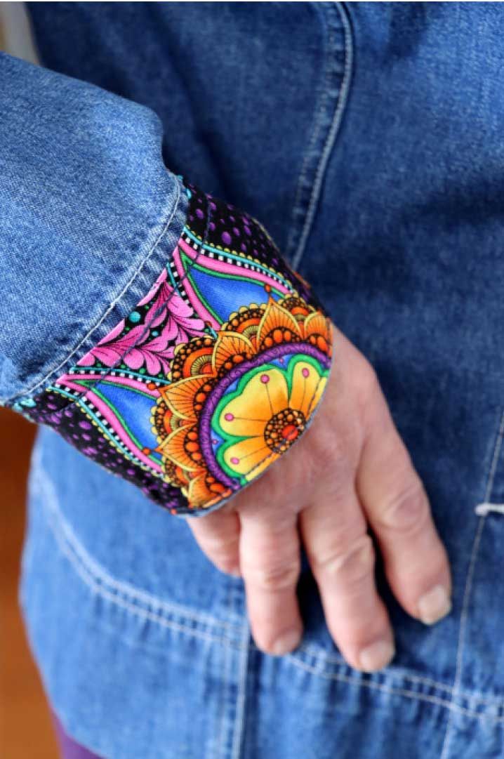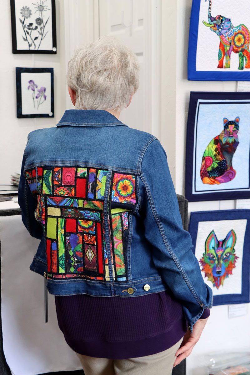 I’m very impressed; Meg creates the initial design, and then Susan zones in on one section, fabricating the vibrant colors and a secondary design used to imagine new products. These already include different-sized bags, kitchen towels, totes, pillows, laptop covers, iPad sleeves, jean jackets, and more. The prices range from $30-$150.