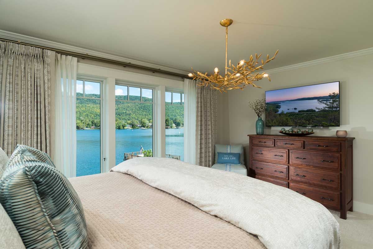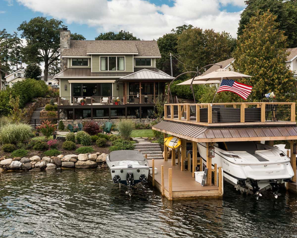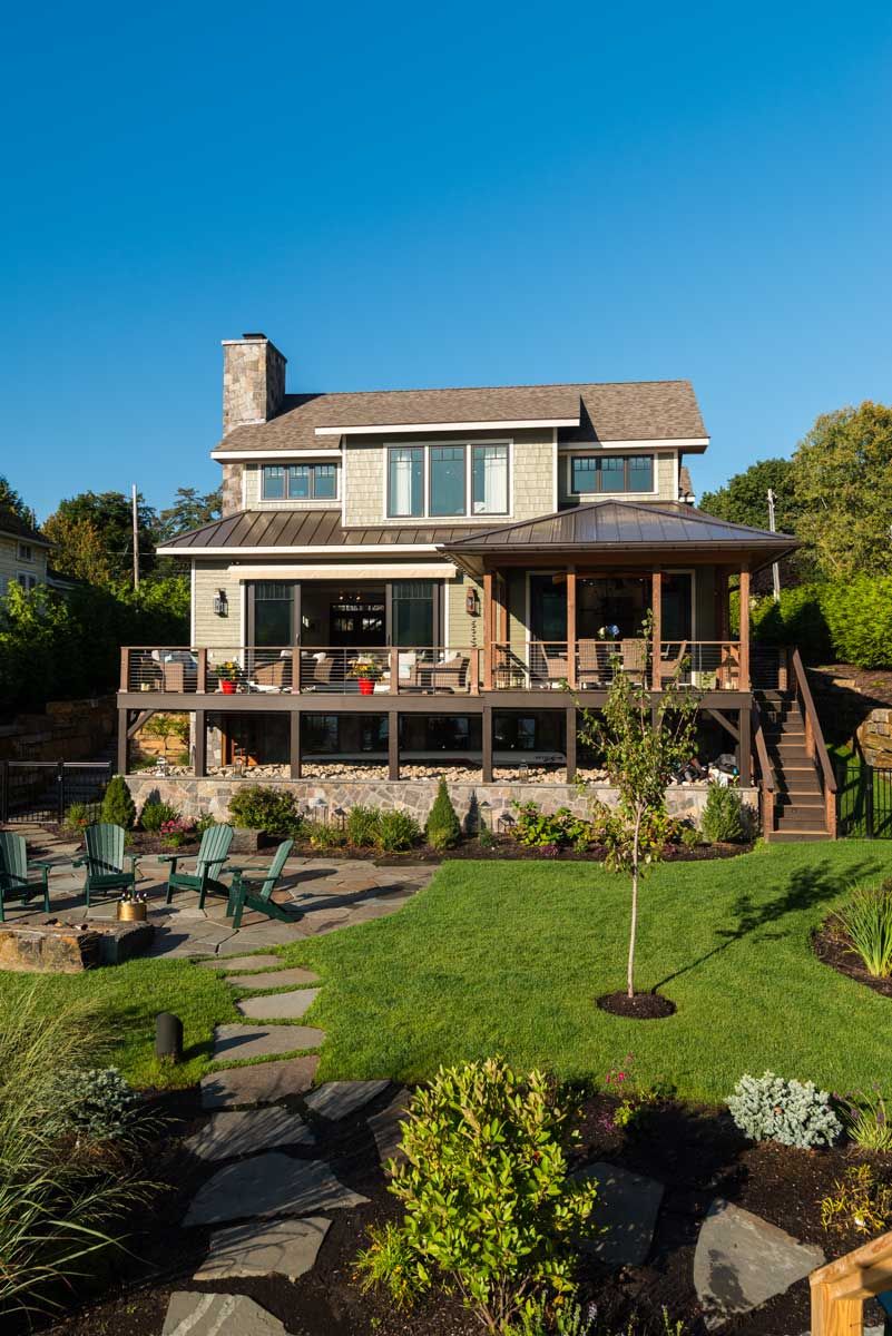 Dually noted, Dean Howland’s approach to the design of the house was magnificent. “The original house sat only 22 feet off the water. If we moved it back, we were able to go a bit higher. This elevated their first-floor view above the boat house, capturing endless views of the lake and the mountains in the distance.” Take a look for yourself…breathtaking!