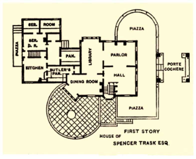 The same edition of the trade publication, The Sanitary Engineer and Construction Record also contained a floor plan of the original Yaddo structure as modified by the Trasks in 1886.
