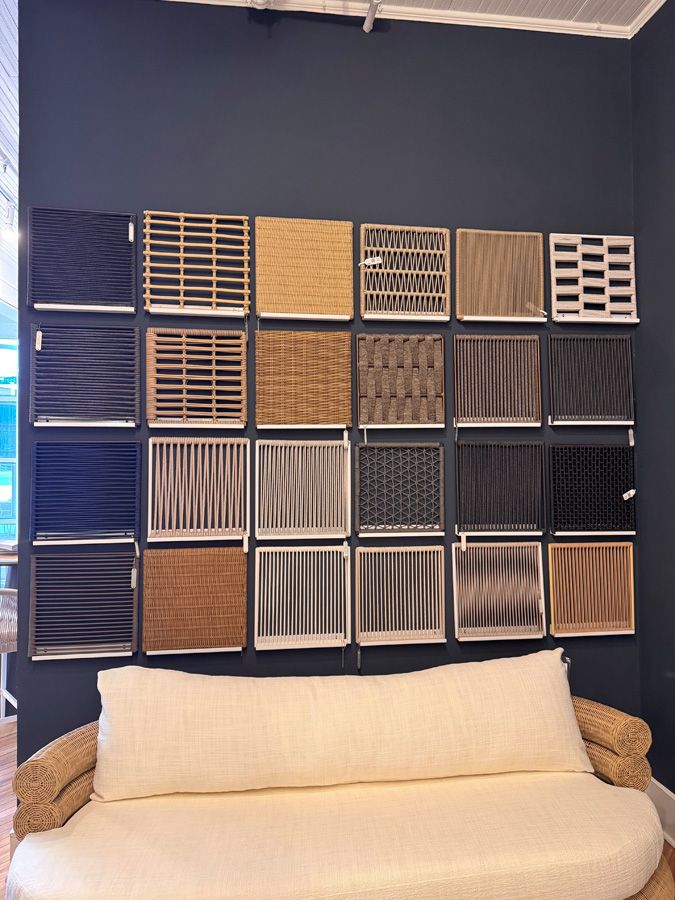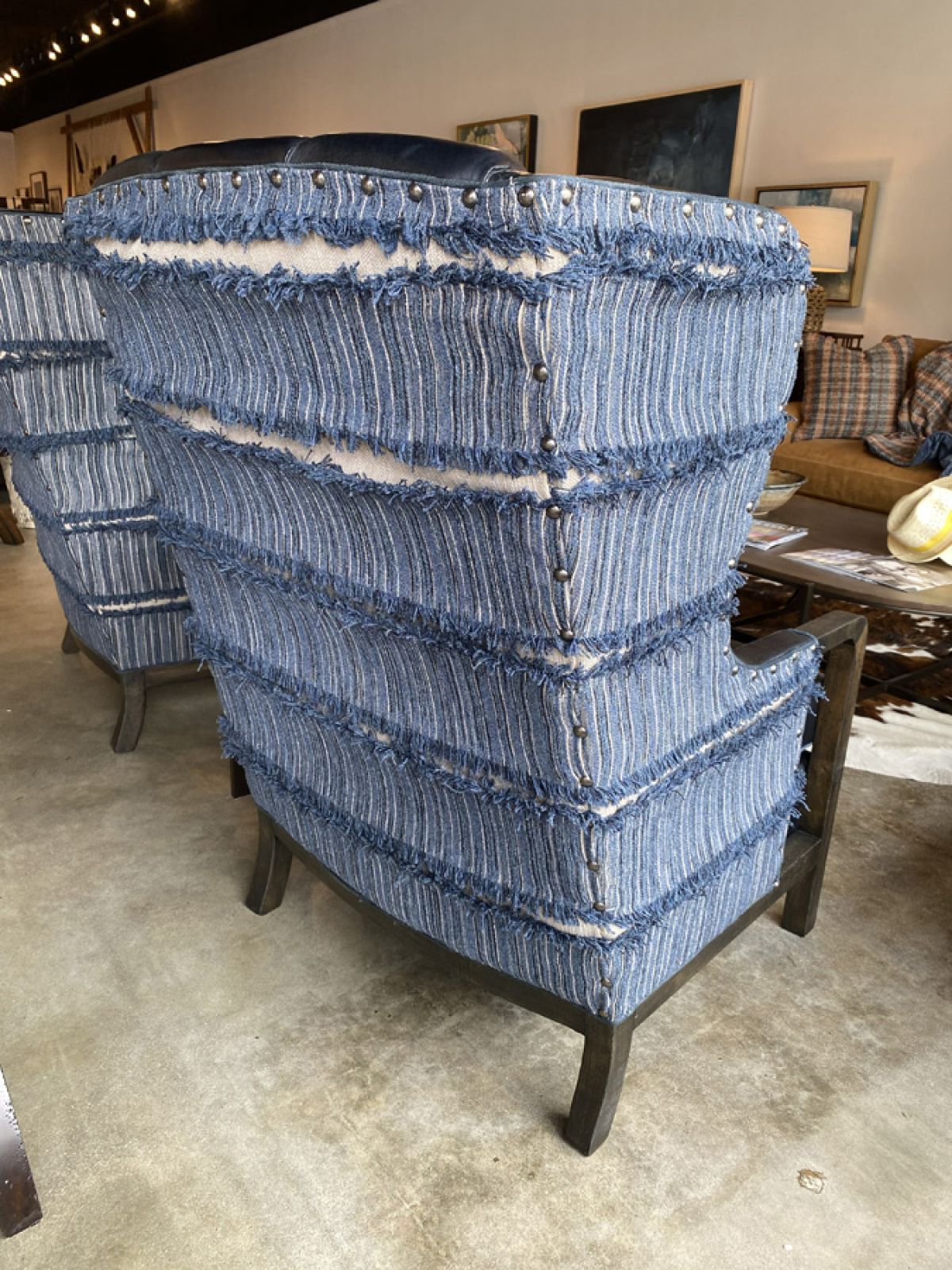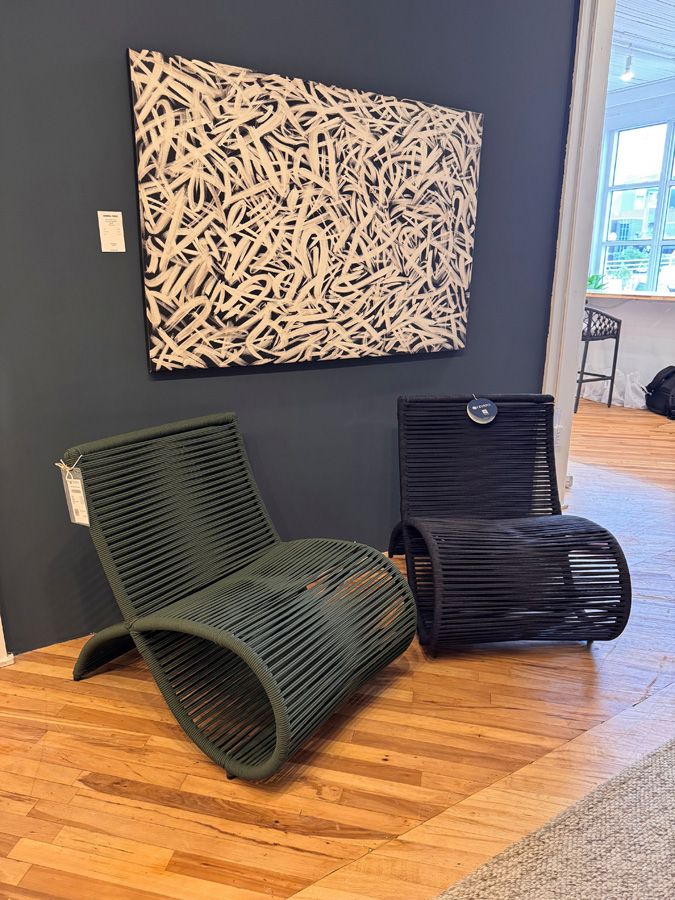 For Indoor furniture, there was an element of refinement with leather wrapped club chair arms paired with fabric and wood accents as noted in the Wesley Hall Showroom. Fabrics were dynamic and layered, offering the opportunity to be inspired to step out of the norm. Check out this tall Ernest Hemmingway club chair found at the McKinley Leather Furniture Showroom with wide, layered fabric tape applied horizontally to the back and secured with an additional layer of nail heads…Bravo!! And taking leather one step further, why not use both sides of the pelt to add an eye-catching whipstitch detail…all from the mind of Creative Director Steve Noble…Genius!