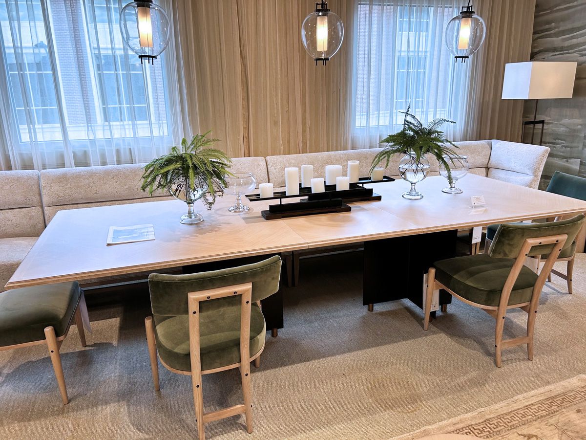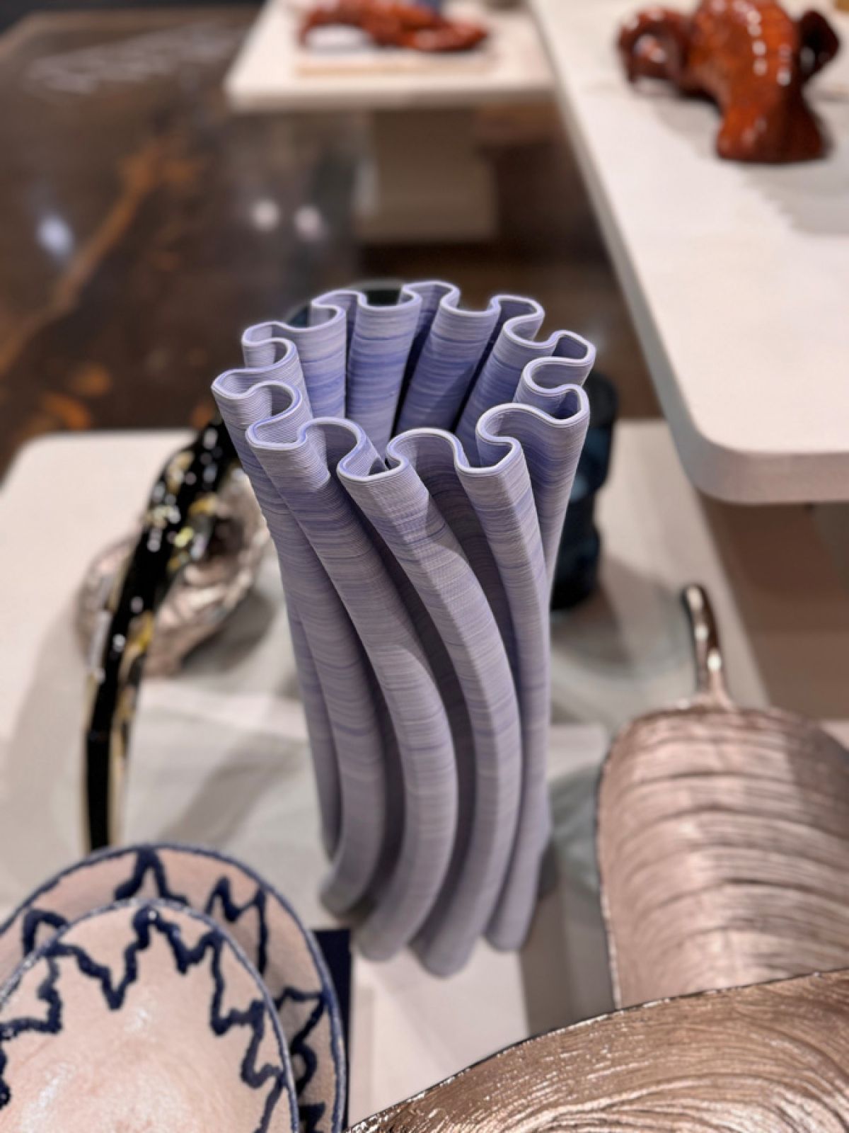 Let’s chat about being together…Another theme dominated with large scale tables and seating that surrounds you in a freestanding, oversized banquette. Reminiscent of dining out, it gathers family for those special moments that occur every day! Ray Booth’s Tectonic Collection at Hickory Chair was no exception. Very nostalgic, leaning into his upbringing and being influenced by his father as an aerospace engineer and gunsmith…inspiring his work of combining wood and metal and revealing the relationship of seeing how that piece is crafted…candid and honest construction! In a political world where we feel the truth is glazed over, this sincerity of composition was breathtaking!
