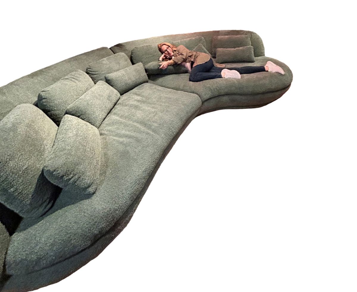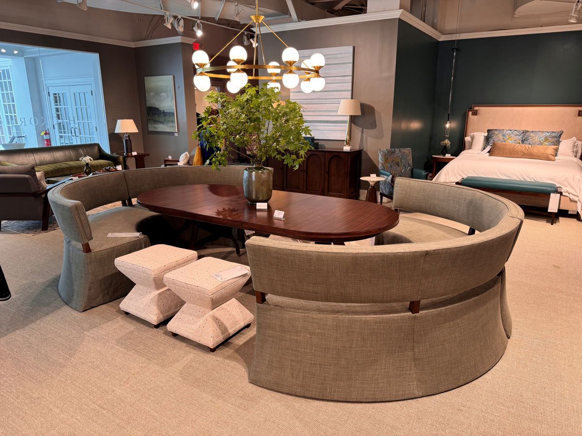 Large scale bent and bowed sofas were prominent throughout. Deep seating with layers of back cushions in a plush or refined manor. Either way, I was moved to dive in…I wished I could have stayed longer!