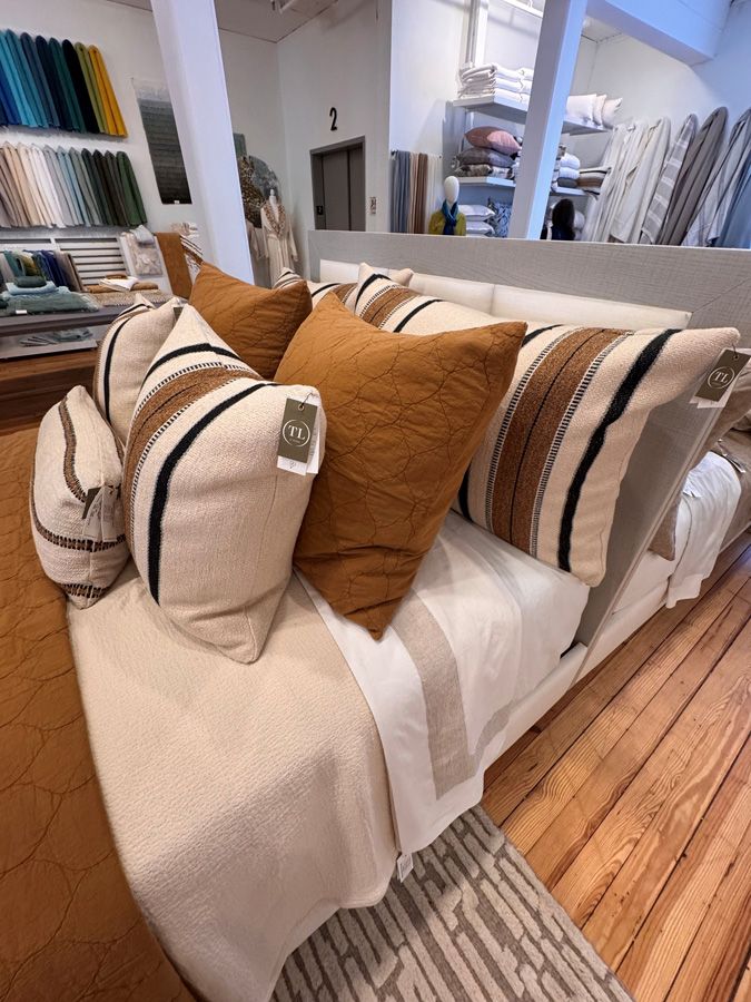 For outdoor furniture, these natural elements were also found in sailor tied knots or woven rope, fabric straps and synthetic wicker for no-worry outdoor entertainment. And the comfort of these Wave chairs from CODARUS, inspired by human form and biomorphic llines, you’ve GOT to try them…But for now…just trust me! Bedding is no exception with an abundance of nubby and gnarled coverlets, velvets, cotton, wool and alpaca…Matelassé and embossed. Pillow cases trimmed in choose-your-own linen tapes for a personal touch…simple yet so elegant… I was so tempted to crawl into one of these beds at TL At Home from exhaustion!