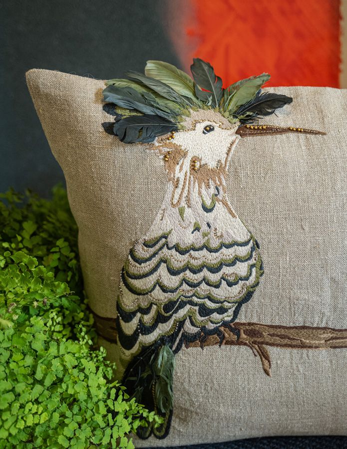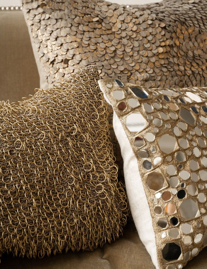 The most saturated trends are the neutrals, greens and organic shapes. We had greens last year but this season the range of hues was wider from deep saturated colors to bright and fun, ensuring a niche for all to embrace. Neutrals were represented with earthy tones of terra cotta, ochre and coffee…and of course, a full range of foliage tints! These aren’t just flat colors like those from a crayon box…these are deep, living colors that draw your eye away from your screen and bring you back to living in the moment! Touch, feel, seek and find…they are not to be ignored! Look at the lush texture in Eileen Applebaum’s new collection of textiles for her Threads Soft Goods Line where individual colors on her Lexi Pillow & Throw offer their full spectrum yet are refined by geometric cuttings on linen. Contrasted by her metal textiles woven with mosaic mirror, laser cut leather and brass rings. Deeper still is her accent of authentic feathers on her Plume Pillow that draw your eye outside the perimeter of this decorative piece and into the sphere of the fabrics and textures beyond.