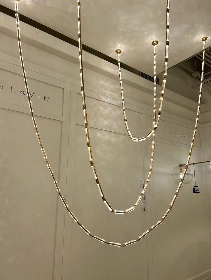 On a larger scale, jewelry is a driving inspiration for introductions from designers such as Noz Nozawa’s Riviere, Lariat and Daith Collections with Corbett Lighting. Her love of jewelry making, transforms lighting into being more than just light…but a statement piece that defines a love of artistry behind each piece. Likewise, Sean Lavin’s new Catena Collection with Visual Comfort, is faceted rectangular-shaped crystals with innovative LED technology, which effortlessly flows from link to link. Like a large bracelet, it moves and shifts to create a sculpture that embodies the home much like jewelry on its owner.