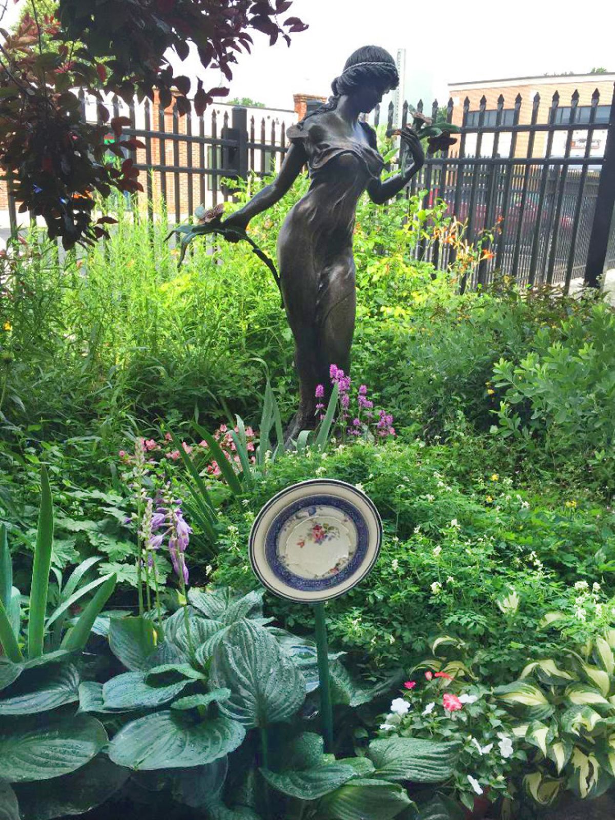 The Heritage Garden Club typically tends to the garden every Tuesday in the spring and summer seasons, but because they were unable to maintain it for such a long time, it had become quite overgrown and filled with litter. They removed invasive bittersweet and bishop’s weed, spread compost (generously provided through their working partnership with the Saratoga Springs DPW) and filled annual pots with coleus and ivy. Pollinator plants brought life back to the garden while visitors enjoyed use of the picnic tables in the sheltered space – a welcome refuge from the summer heat located at the gateway to the city.