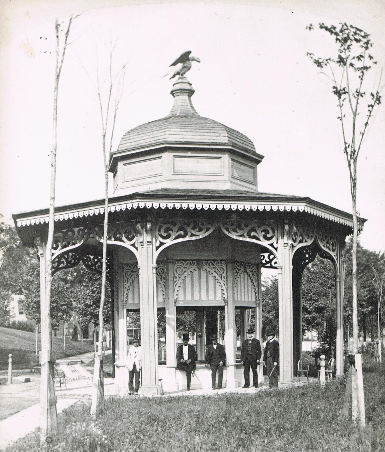 This is an image of the famed High Rock Spring after renovations to the site produced the famed “Eagle Cover” in 1876. All the mineral springs at this time were privately owned and those owners worked hard to make their spring covers be the best in the village.