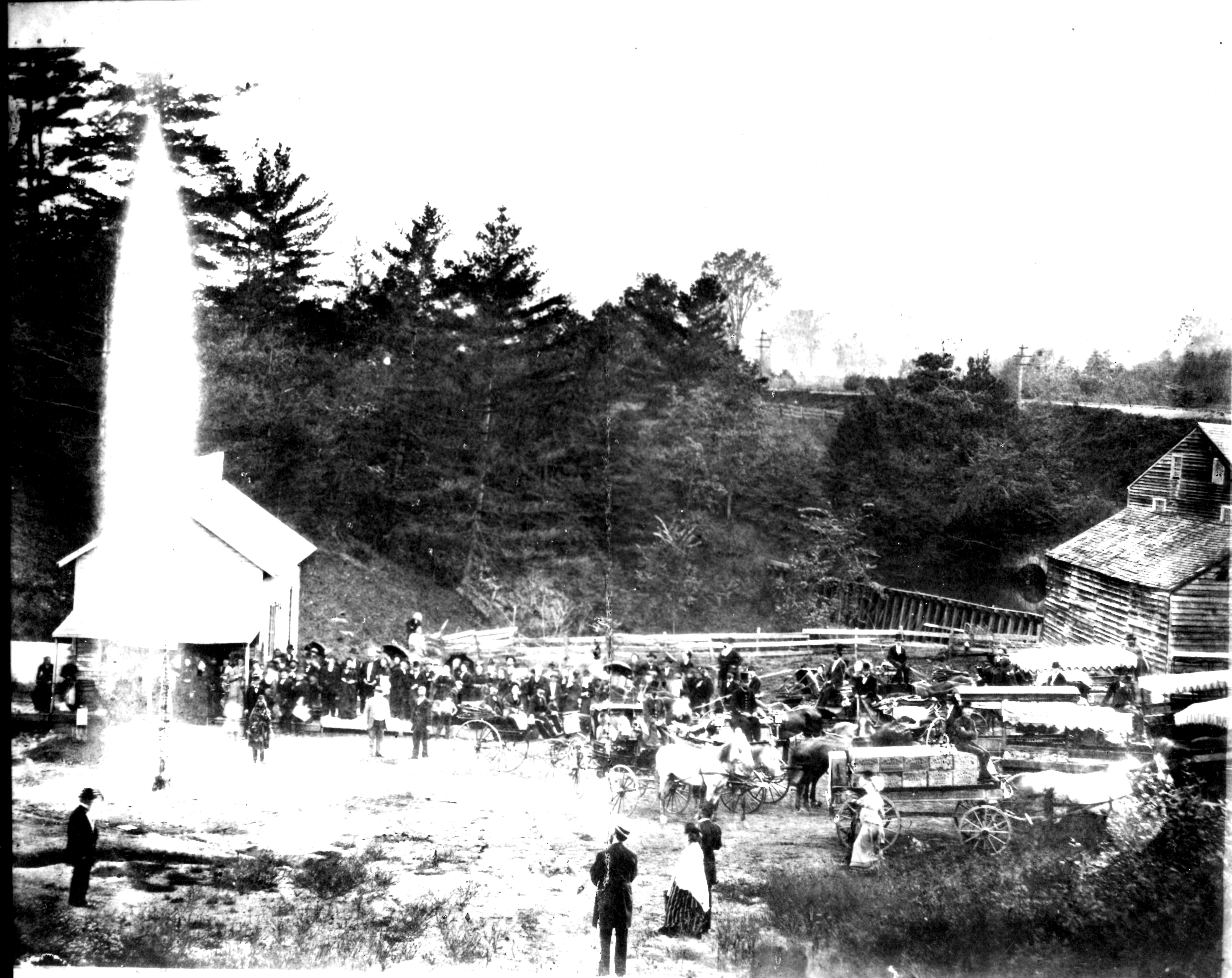 Adjacent to the sawmill, Ellis’ son-in-law George Peck developed a small scythe factory powered by a trip hammer around 1801, which he operated until his death in 1838. Several hundred yards downstream at another mill seat, Robert Ellis, Jr. constructed a gristmill in 1818 located where the creek today emerges from the old railroad stone culvert. That mill continued to operate throughout the 19th century, later owned by David Gibbs and his son William, who sold the flour produced there at their store in Saratoga Springs.