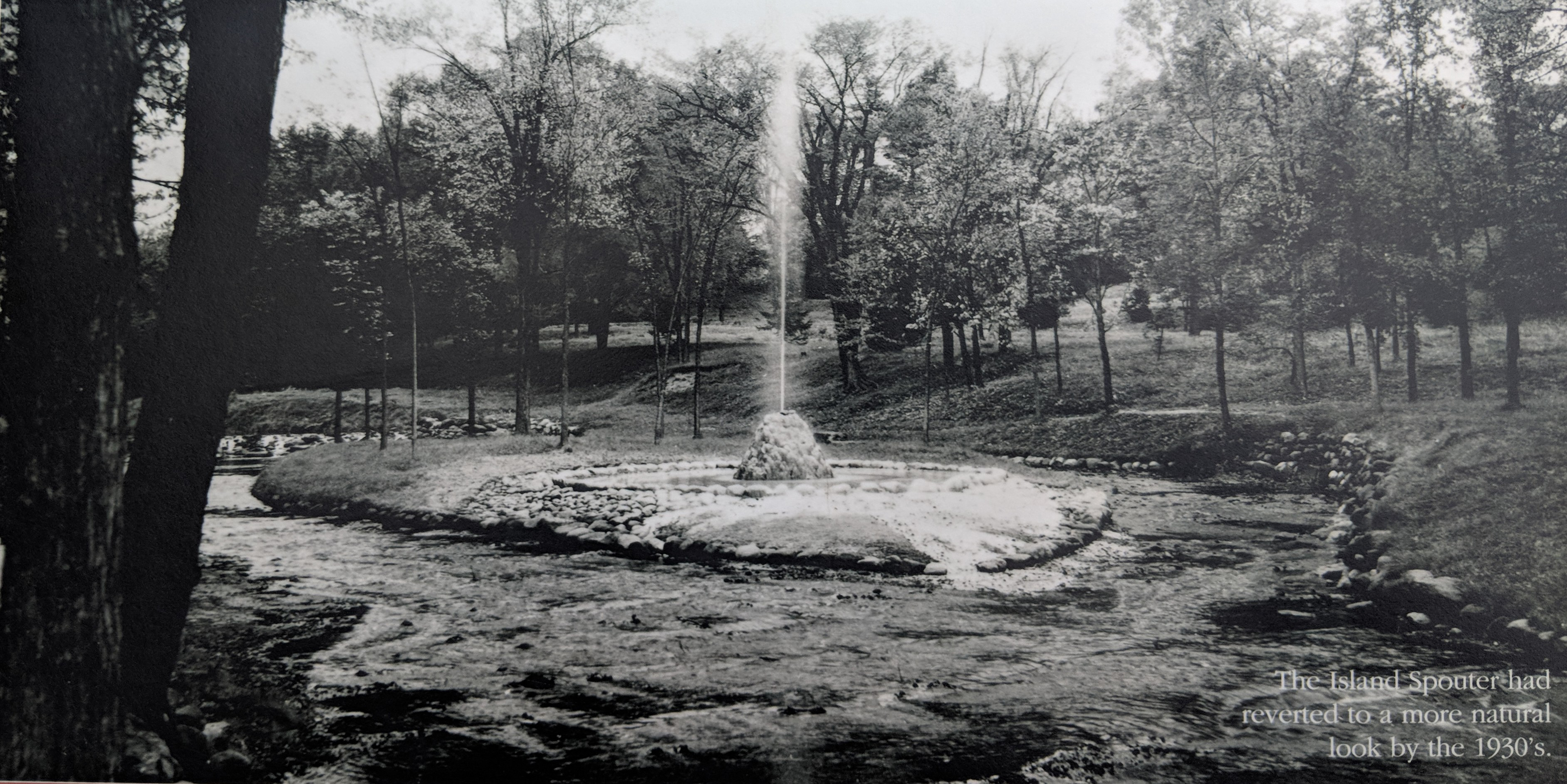 After a successful 1907 court case involving Frank Hathorn’s spring in downtown Saratoga, a Committee of Concerned Citizens, led by Spenser Trask, owner of the Yaddo Estate, lobbied for an anti-pumping law that was passed by the State Legislature the following year. The gas companies refused to suspend their pumping activities, and sued the State, seeking to overturn the law. Faced with a long court battle, the State stepped in, forming the State Reservation with the authority to buy up the gas companies’ property, halt the pumping and restore the springs to their natural state. The Reservation was also given the task of recreating the park around the restored springs, the first step in the development of the Saratoga Spa State Park we enjoy today.